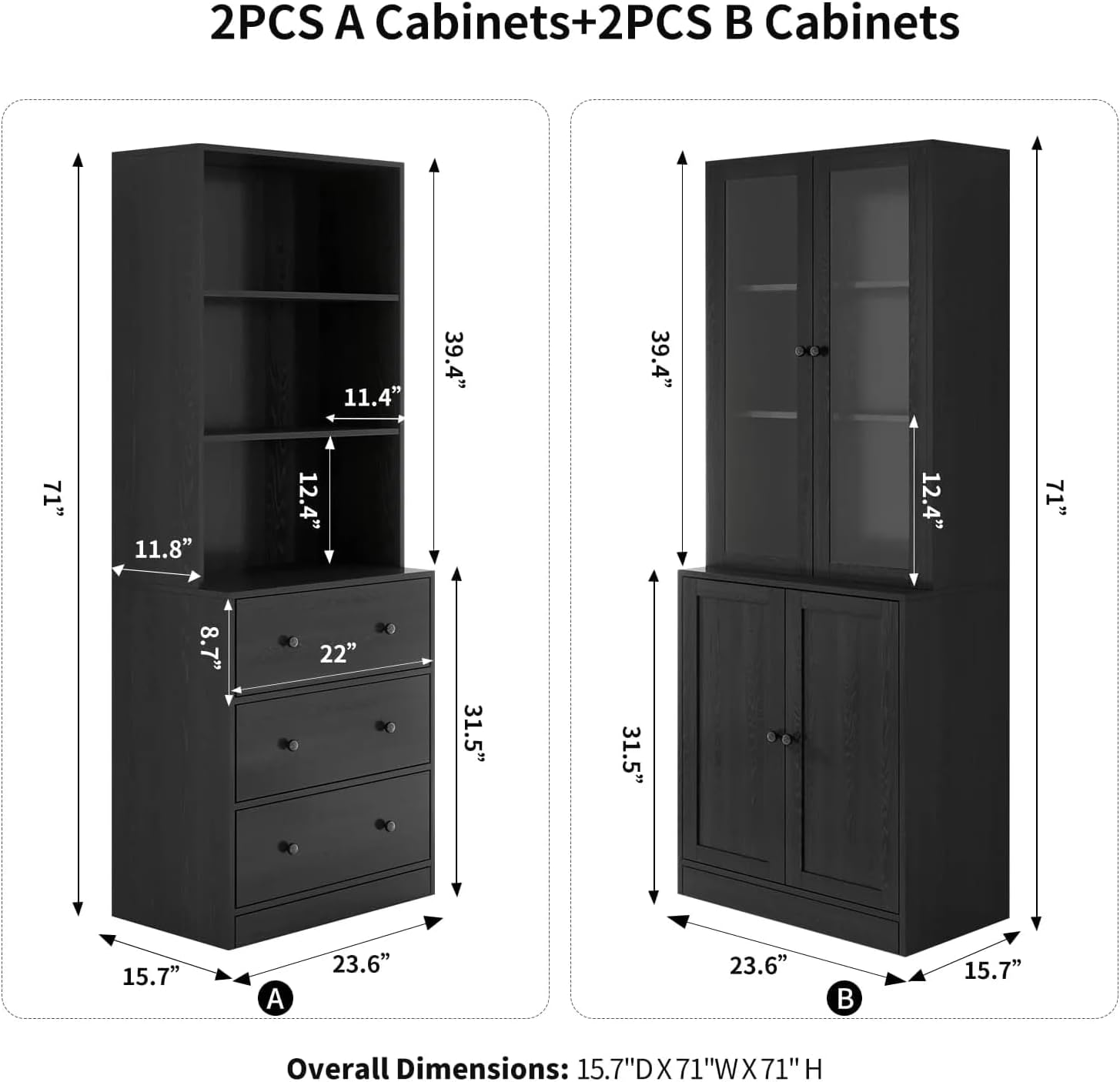 - DIY Your Cabinets: Customize your storage space with 3 drawers, 3 open shelves, 2 hidden shelves, and 3 shelves with glass doors. Perfect for bookcases, kitchen shelves, and display cabinets.