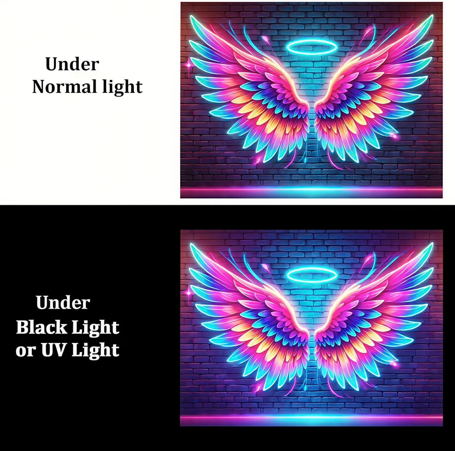 - Unique Gift Choice: Surprise friends or loved ones with this UV reactive angel wings tapestry, perfect for artistic souls, party enthusiasts, or anyone who enjoys unique and vibrant home décor. A memorable gift for any occasion. it will serve as a captivating and stylish addition to your décor.