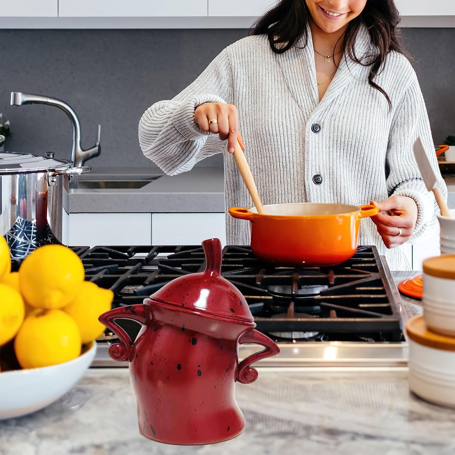 - Unique Forked Waist Design: This jar has an interesting touch with two hands on its waist, its bold and expressive design adds color and style to any kitchen or living space