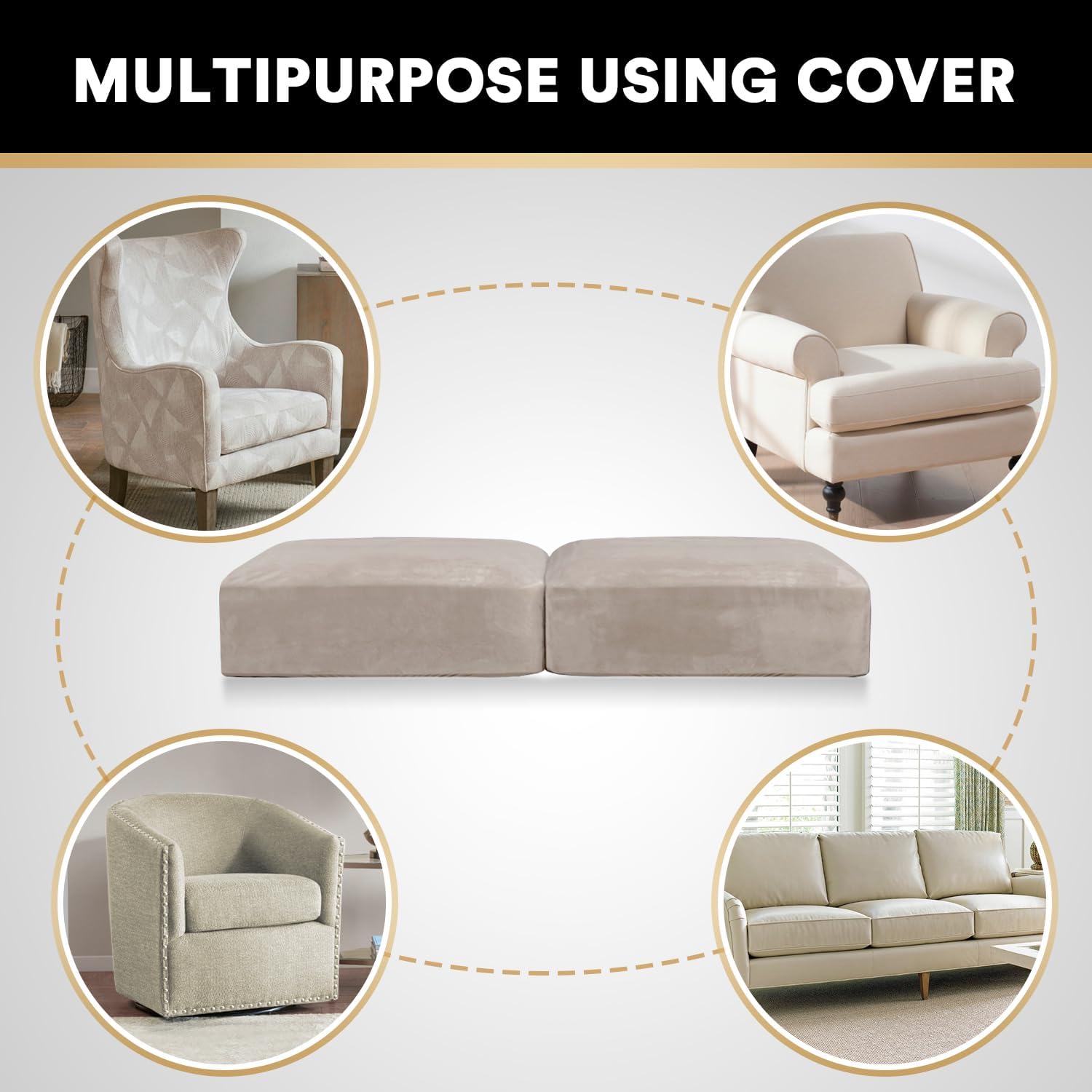 PrinceDeco Stretch Velvet Cushion Cover Sofa Cushion Slipcover for Loveseat Sofa Couch Cushion Furniture Protector Seat Cushion Sofa Cover(Each Width Up to 29.5", Oatmeal)