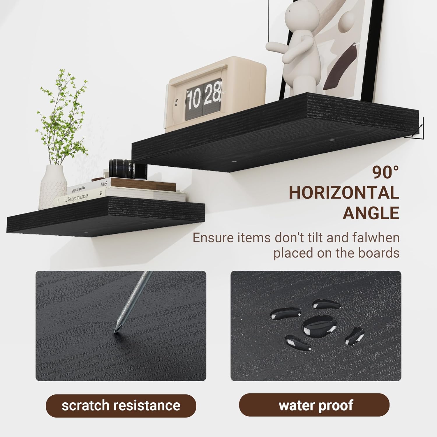 48 Inch Floating Shelves, 48"x9.25"x1.5" Inch Deep Floating Shelves for Wall, Wooden Shelves for Bathroom, Bedroom, Living Room, Black
