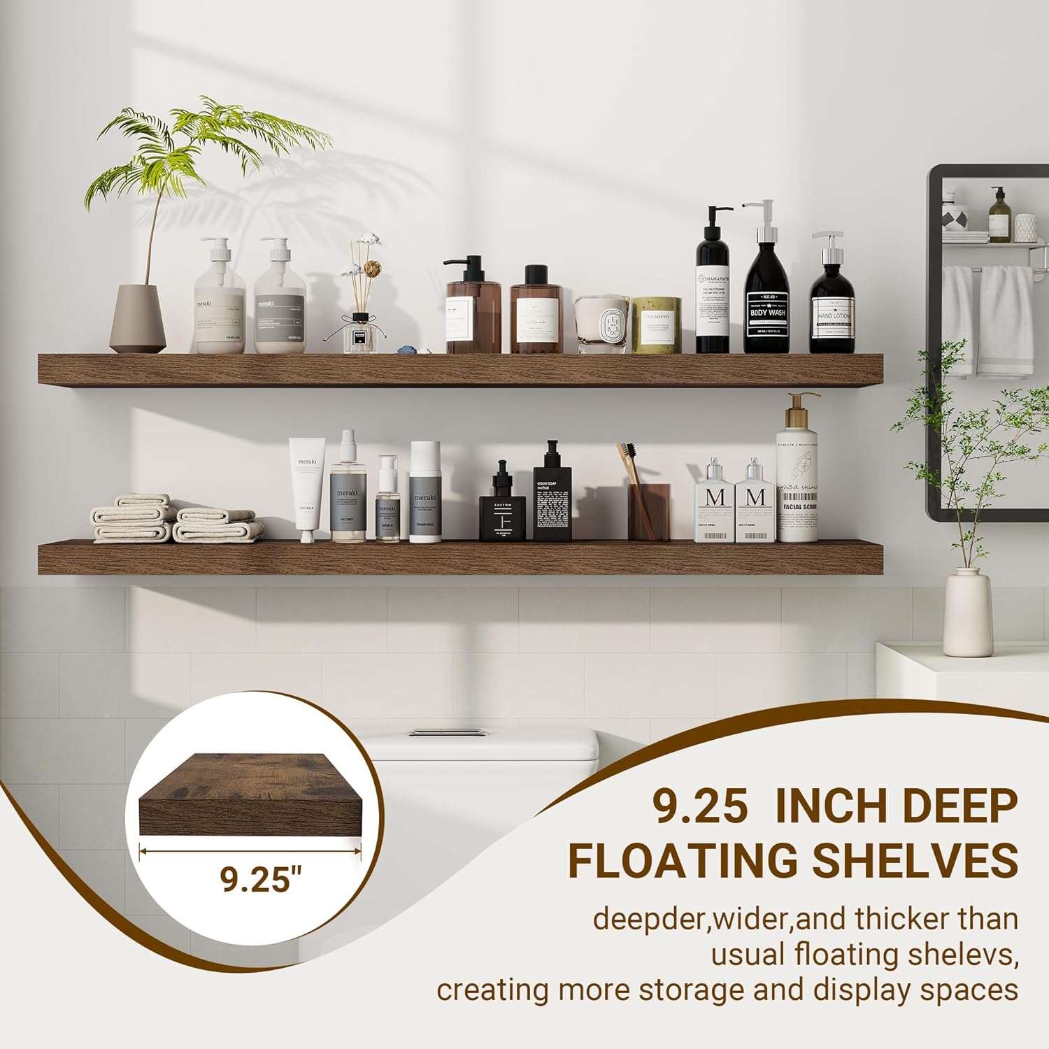 - ăSpacious and Versatileă With an impressive depth of 9.25 inches and a thickness of 1.5 inches, these shelves provide ample space for a variety of items. Whether it's photos, books, DVDs, or decorative knickknacks, these shelves can handle it all, offering a practical yet stylish storage solution