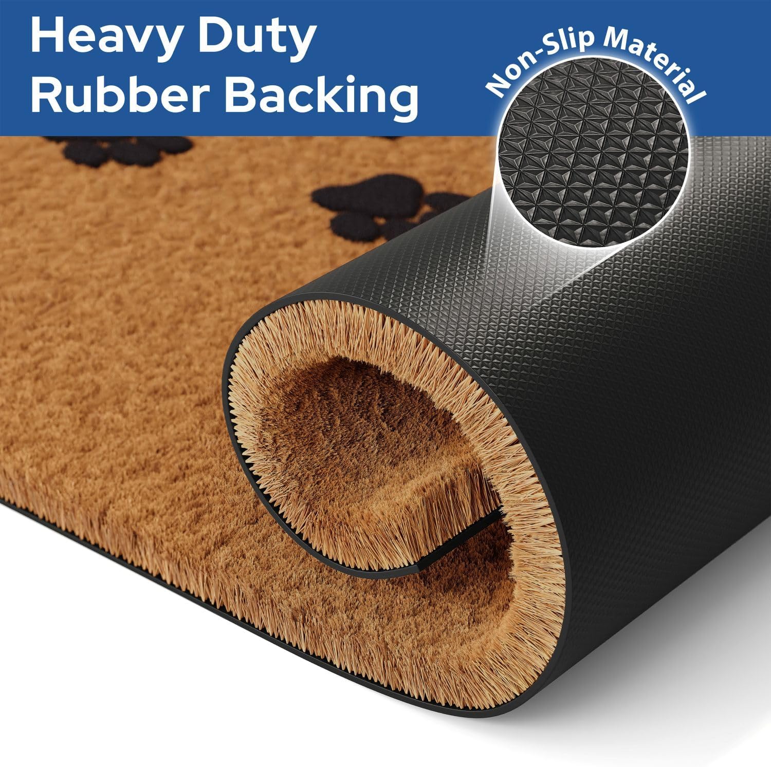 Barnyard Designs Natural Coco Coir Heavy Duty Backing Doormat - Large Cute Non-Slip Front Door Welcome Mat for Outside Entrance or Porch Entry, Brown (24x36, Paws)
