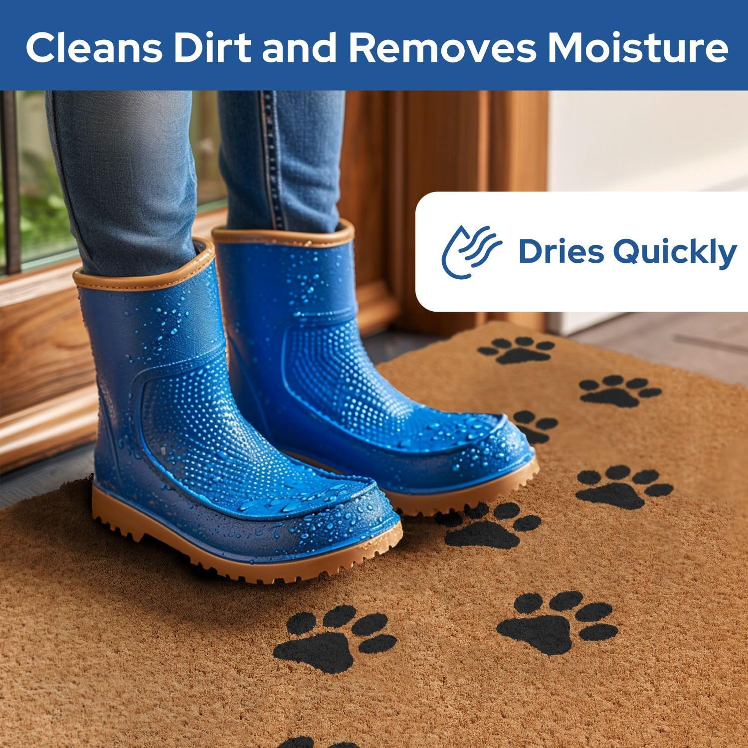 - Versatile - Our Paw Prints welcome doormat outdoor entrances is not only perfect for patios, but also makes a great welcome mat for outdoor events or camping trips. Its durable construction is perfect for cleaning dirt and debris from shoes, and the all-weather coir fibers dry quickly. Use it to welcome guests to your home, cabin, or RV.