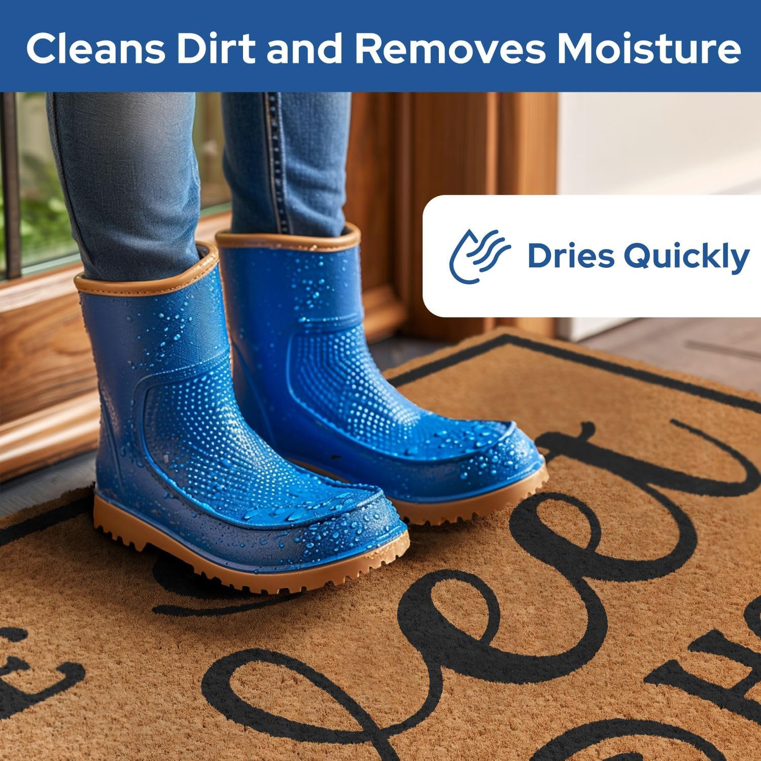 - Made of Durable Coir - Our doormats are made of 100% coconut coir fibers, one of the strongest and most durable natural fibers on earth. The high-quality coir used in its construction ensures that it will maintain its shape and appearance, even with heavy use. Please note that light shedding may occur, as is common with all natural coir mats. Additionally, avoid completely soaking mat with water as this could lead to natural coir runoff.