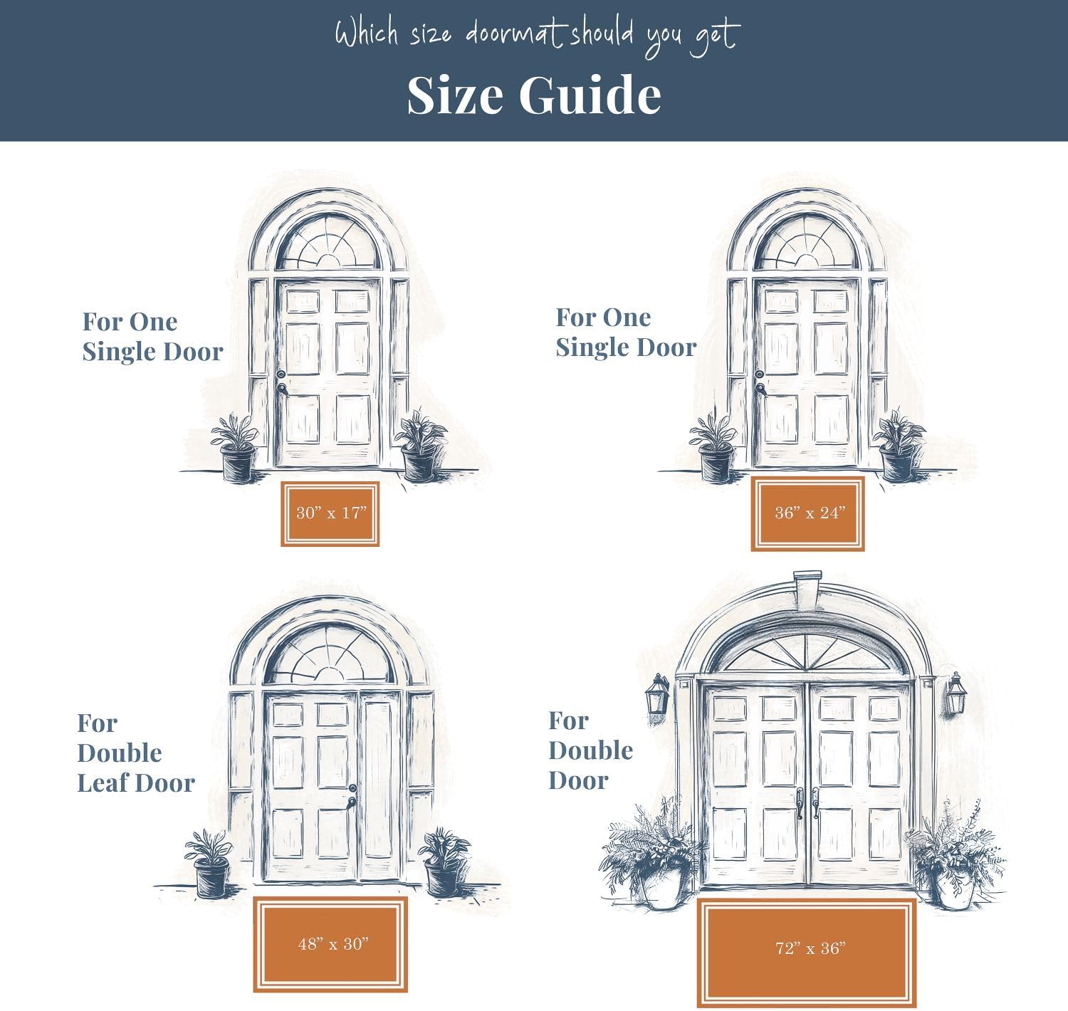 - The Perfect Size - Measuring 36 x 24 inches, our welcome mat outdoor entrance rug is just the right size for any entryway. It’s big enough to accommodate two people standing side by side, yet small enough to fit in front of a single door without overwhelming the space. It’s the ideal front door mat outside entrance rug for any home or office.