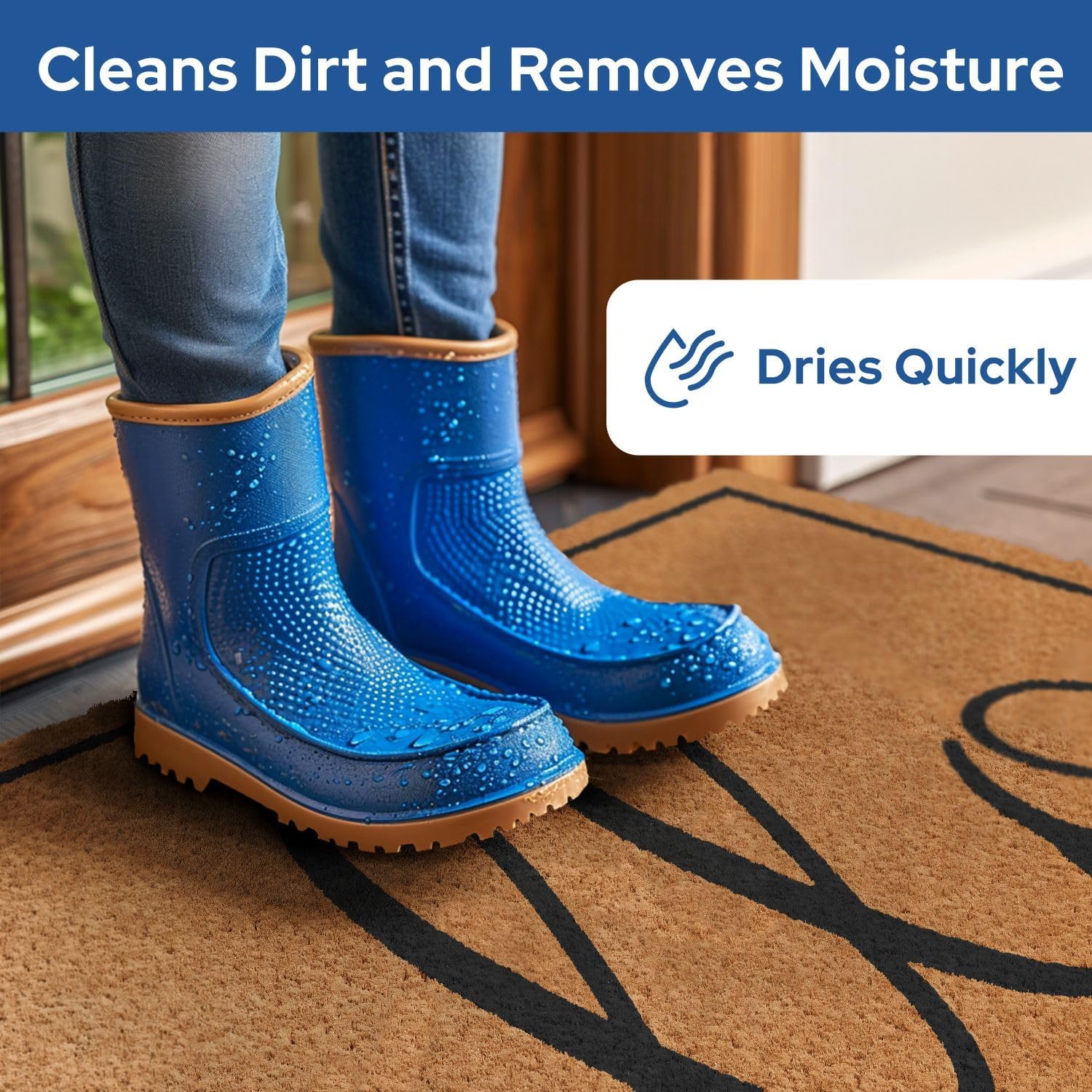- Slip-Proof - Our non-slip rubber backing keeps the welcome door mat securely in place, preventing slips and falls. Whether you have a concrete, stone, or wooden porch, our exterior door mat outside entrance rug will stay put and keep your visitors safe.