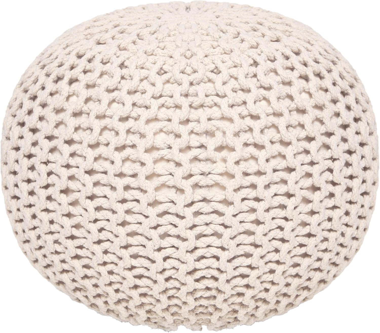 REDEARTH Round Pouf Ottoman –18"x18"x14" Hand-Knitted Cotton Pouffe –Cable Footstool –Boho Dori Hassock –Pre-Stuffed Poof – Extra Seat -Poofy Footrest for Living Room, Bedroom, Nursery, Nook –Ivory