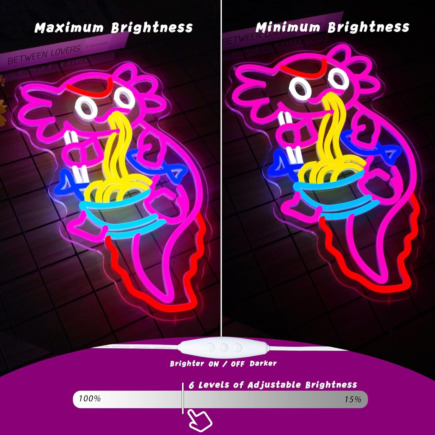 - Unique Axolotl Design: This neon sign features an adorable axolotl enjoying a bowl of ramen, a design that's sure to delight anime and animal lovers alike. Its unique theme makes it a conversation starter and a fun addition to any space.