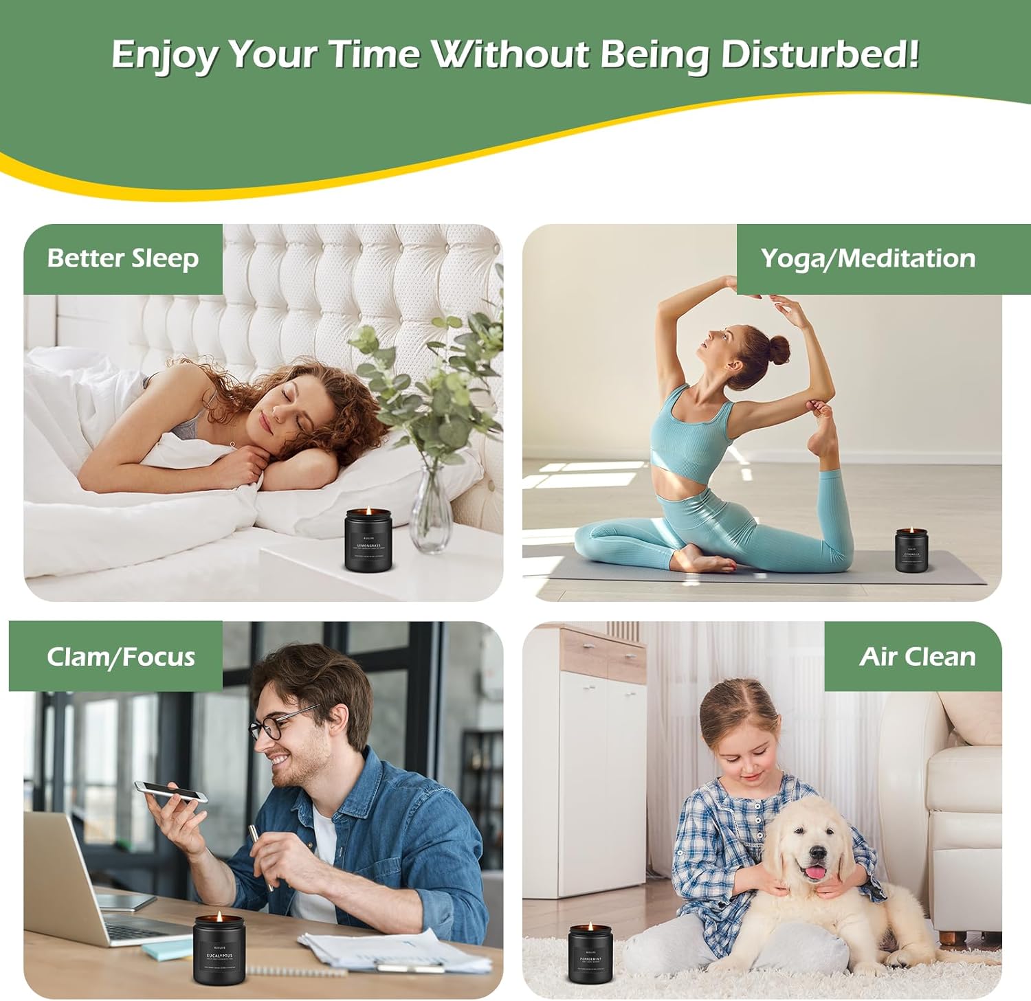 - Improved Air Quality --- If youâre looking to purify the air in your home, particularly in high-traffic areas, Peppermint , Eucalyptus candles can subtly help in clearing the air while filling the room with an uplifting aroma. Itâs the perfect scent to revitalize your senses and leave your space feeling fresh.