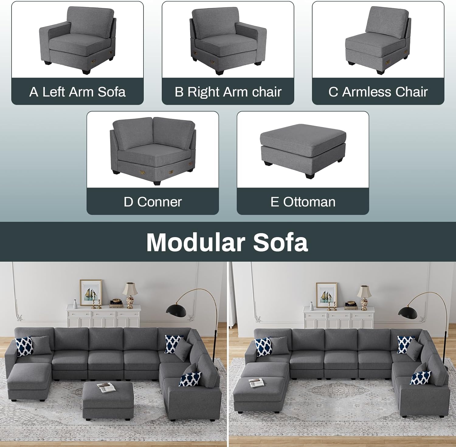 L Lengend Vansen Modular Sectional Sofa U Shaped Couch with Ottoman Modern Reversible Corner Sectional Couch for Living Room (Dark Grey, U Shaped Sofa-5)