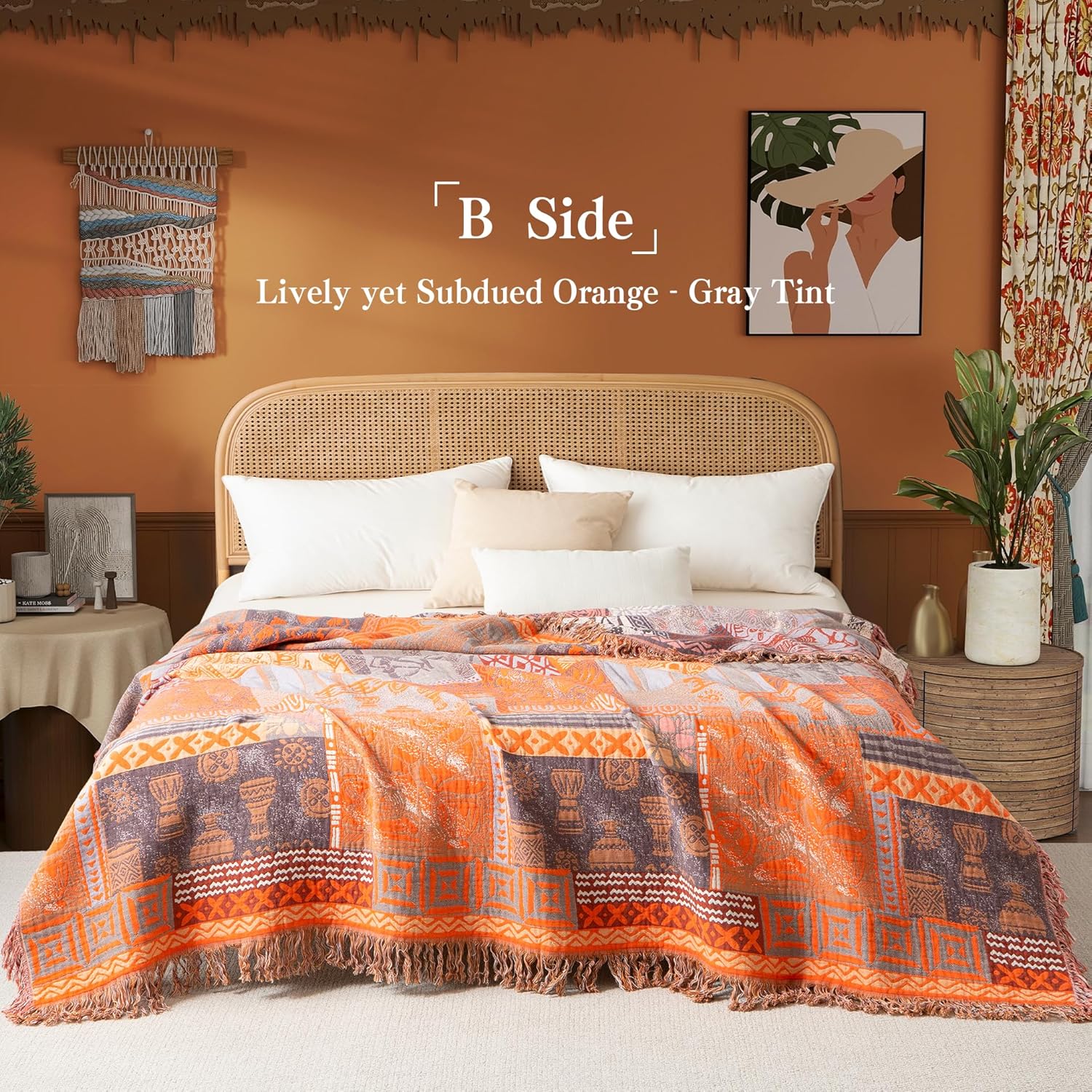 - Boho-Inspired Design: Bring a touch of boho-inspired style to your home with this woven blanket. Its colorful floral patterns and artistic design complement any decor, from cottagecore to farmhouse to modern styles. This decorative piece adds warmth, texture, and personality to your space, creating a cozy, welcoming atmosphere wherever you place it. Perfect for refreshing your living room or bedroom, it combines beauty and comfort in one must-have accent.