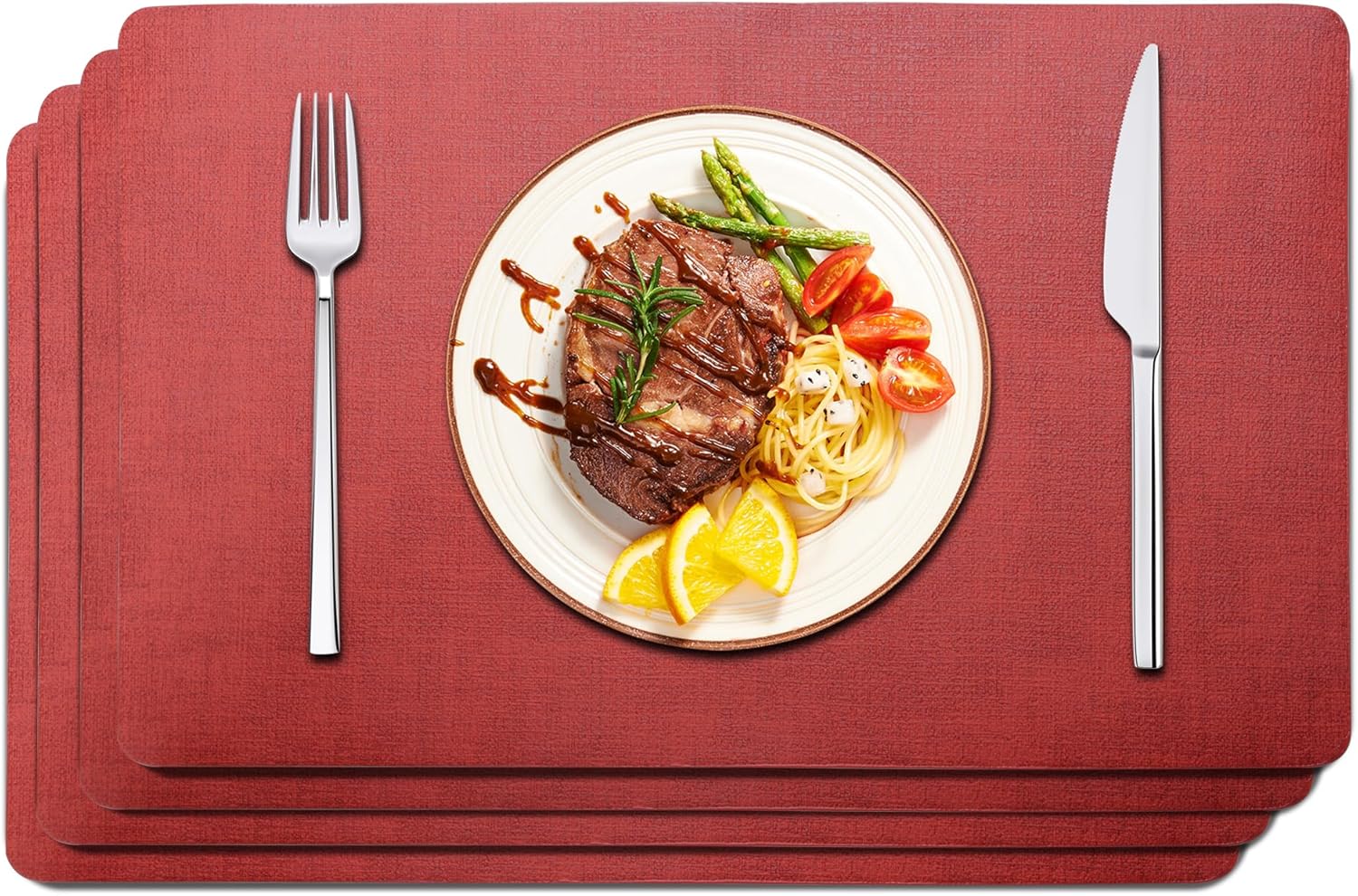 - Simple & Sophisticated - Made with premium faux leather, this placemats 6-pack features a solid design in a rich hue and pleasant textile touch that offers simple yet elegant addition and a splash of color for place settings. Perfect for use for both everyday meals and special occasions.