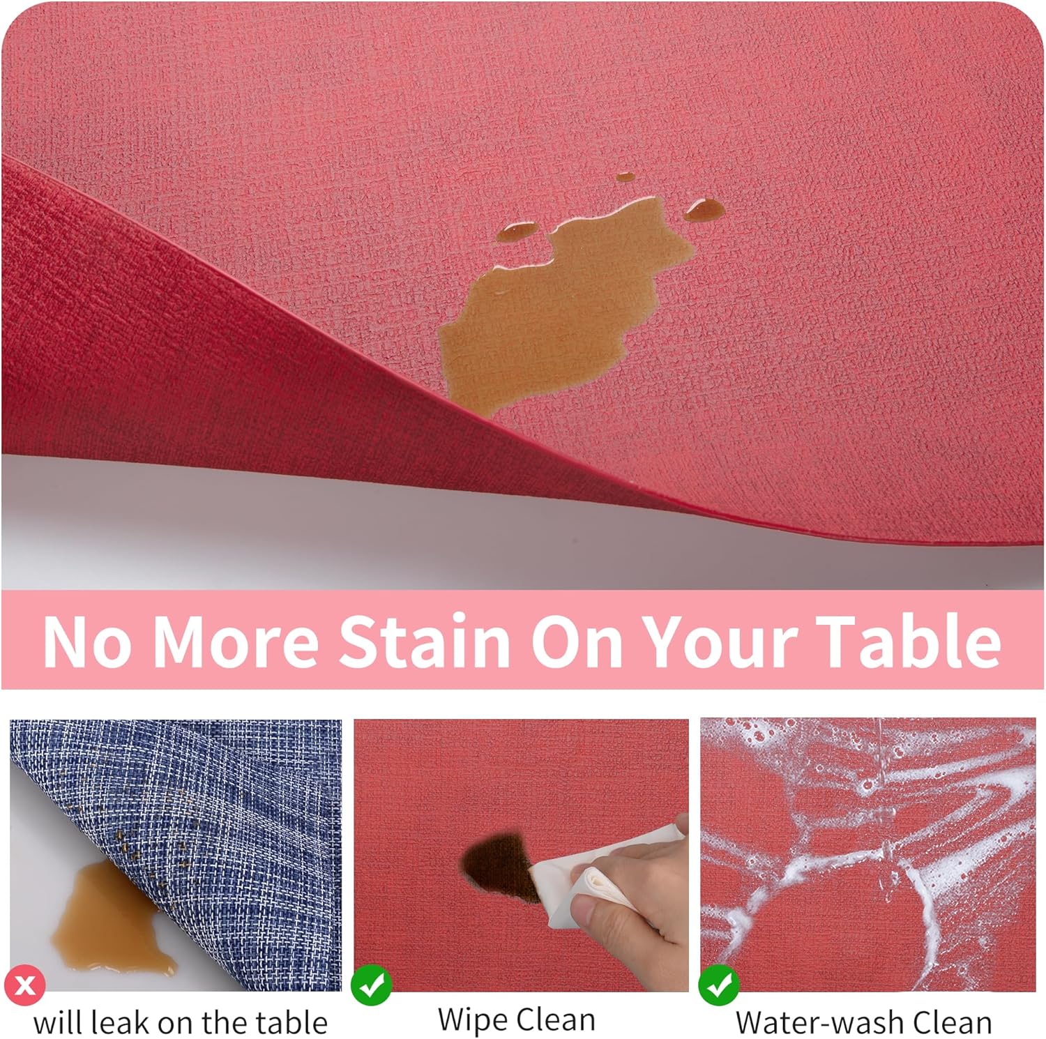 - EASY CARE: Designed for ease of use, these durable table mats withstand any spills and stains, making clean-up a breeze. Just with a simple wipe with a rag or a rinse under the tap, they'll be spotless and ready for your next meal.