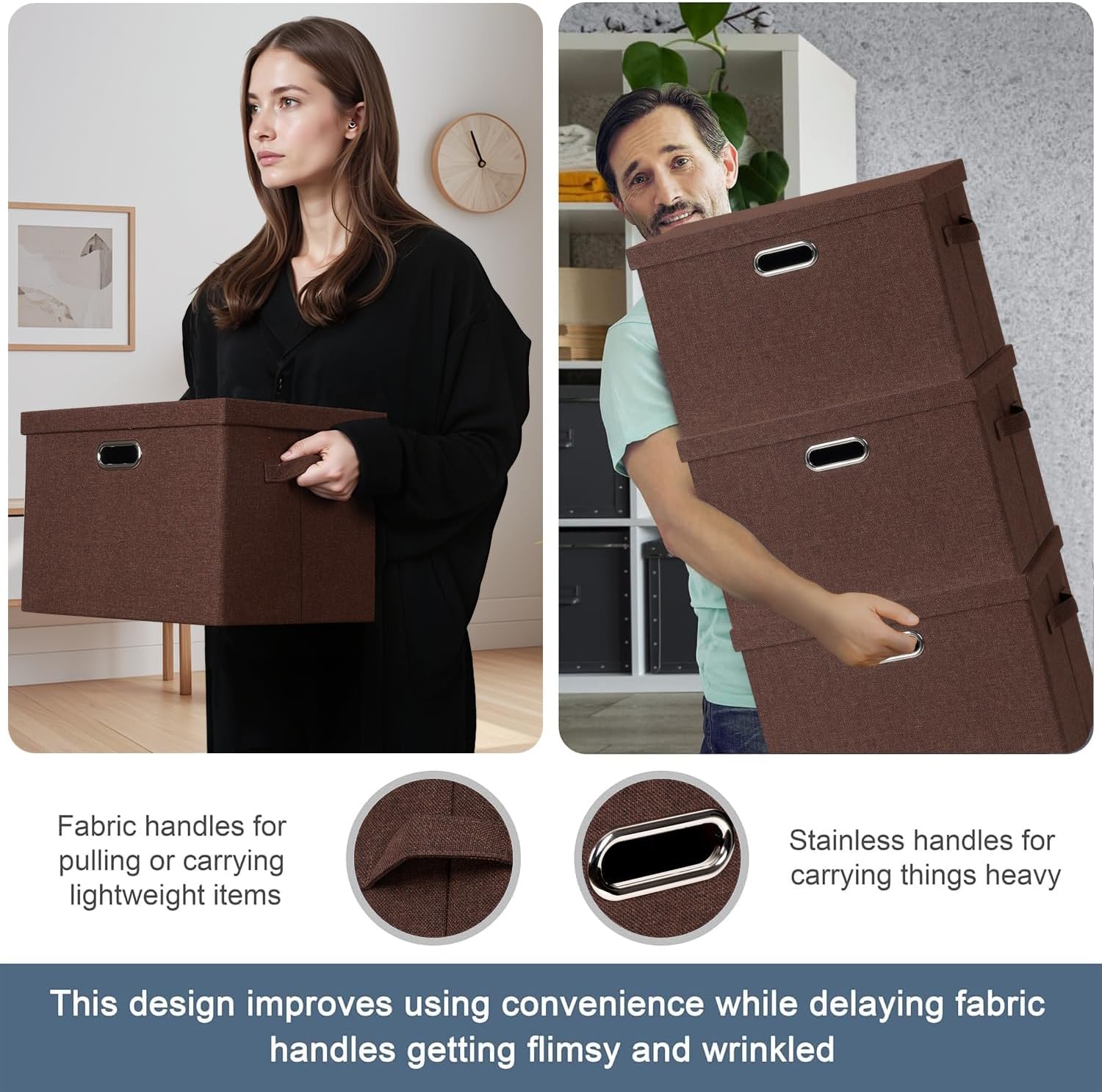 - β [Constant Use] Covered by thick textured cloth, our large lidded storage bins prevent daily wears and tears. They can keep dust and bugs out also, avoiding dirt and musty smell. You can use these decorative storage boxes with lids everyday or for long term storage.