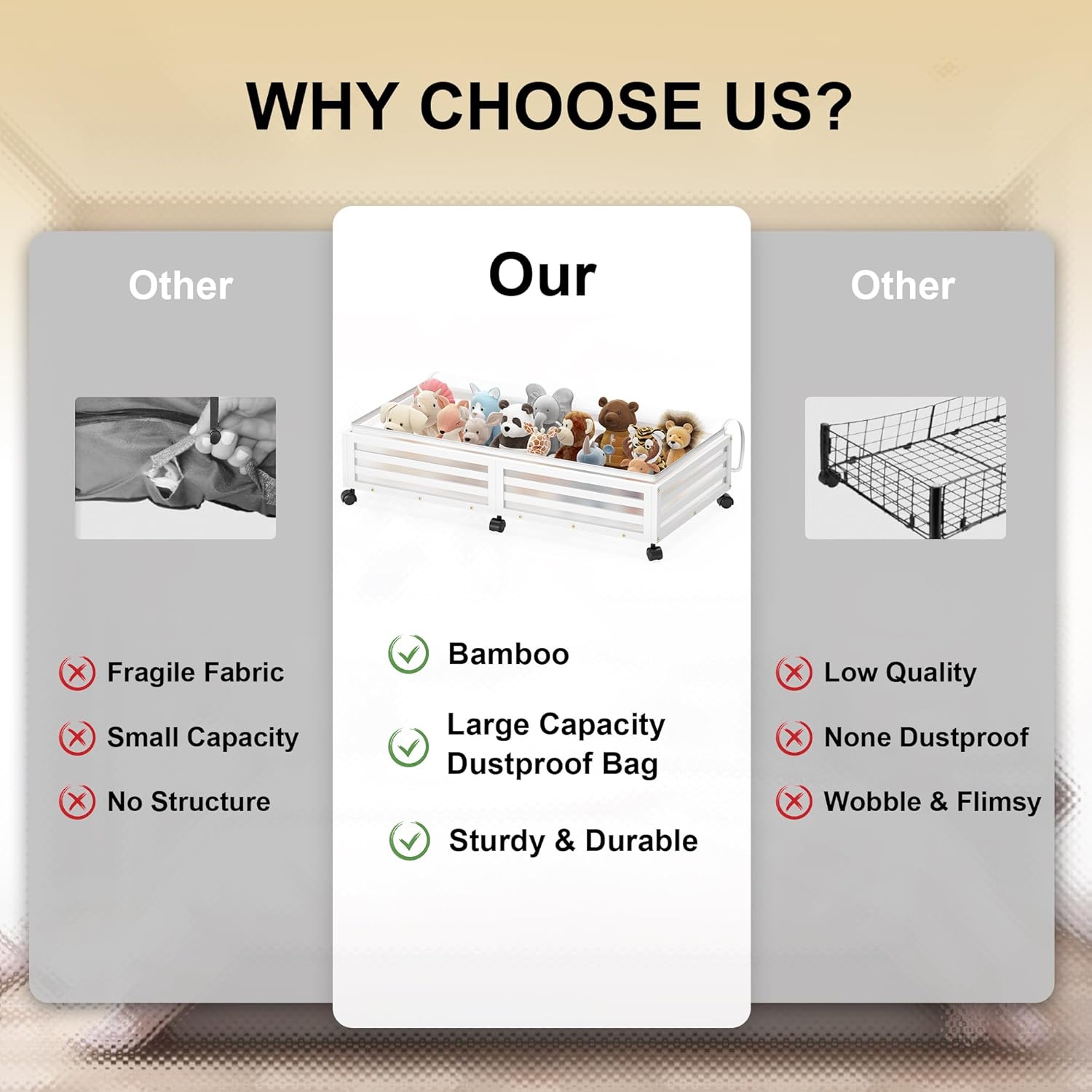 - 【360° Rotating Wheels】Features detachable wheels for easy sliding in and out from under the bed; convenient access in tight spaces
