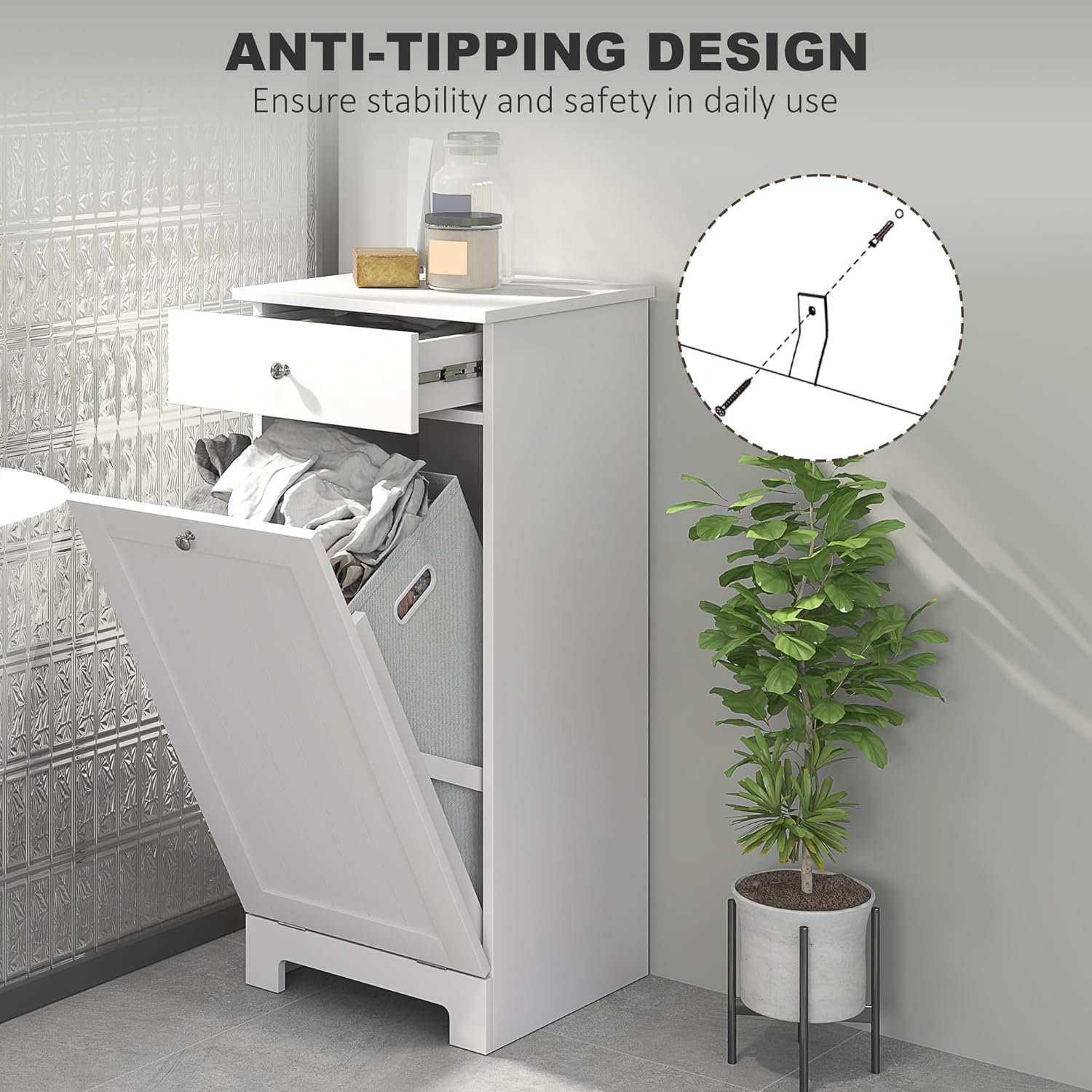 HOMCOM Laundry Hamper with Removable Basket, Tilt Out Hamper with Drawer and Beadboard Door, Bathroom Storage Cabinet, White
