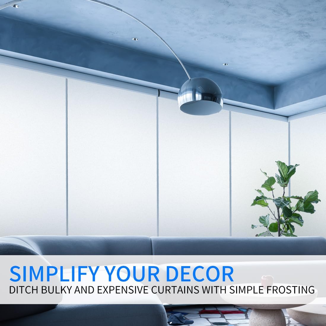 - [Window film privacy day and night]; Frosted window privacy film is used for glass windows, which can block prying eyes and dog barking, can effectively block unwanted sight from the outside, ensure that your private space is well protected, while still allowing soft natural light to enter, vinyl window film simple decoration makes life easier and better, glass doors, bathrooms, bathroom windows, home, kitchen, french doors, front door side windows, living room, meeting room, office, living room, house, patio door, bedroom, etc., window privacy screen, sliding door, Create a more comfortable living space for you and your family.