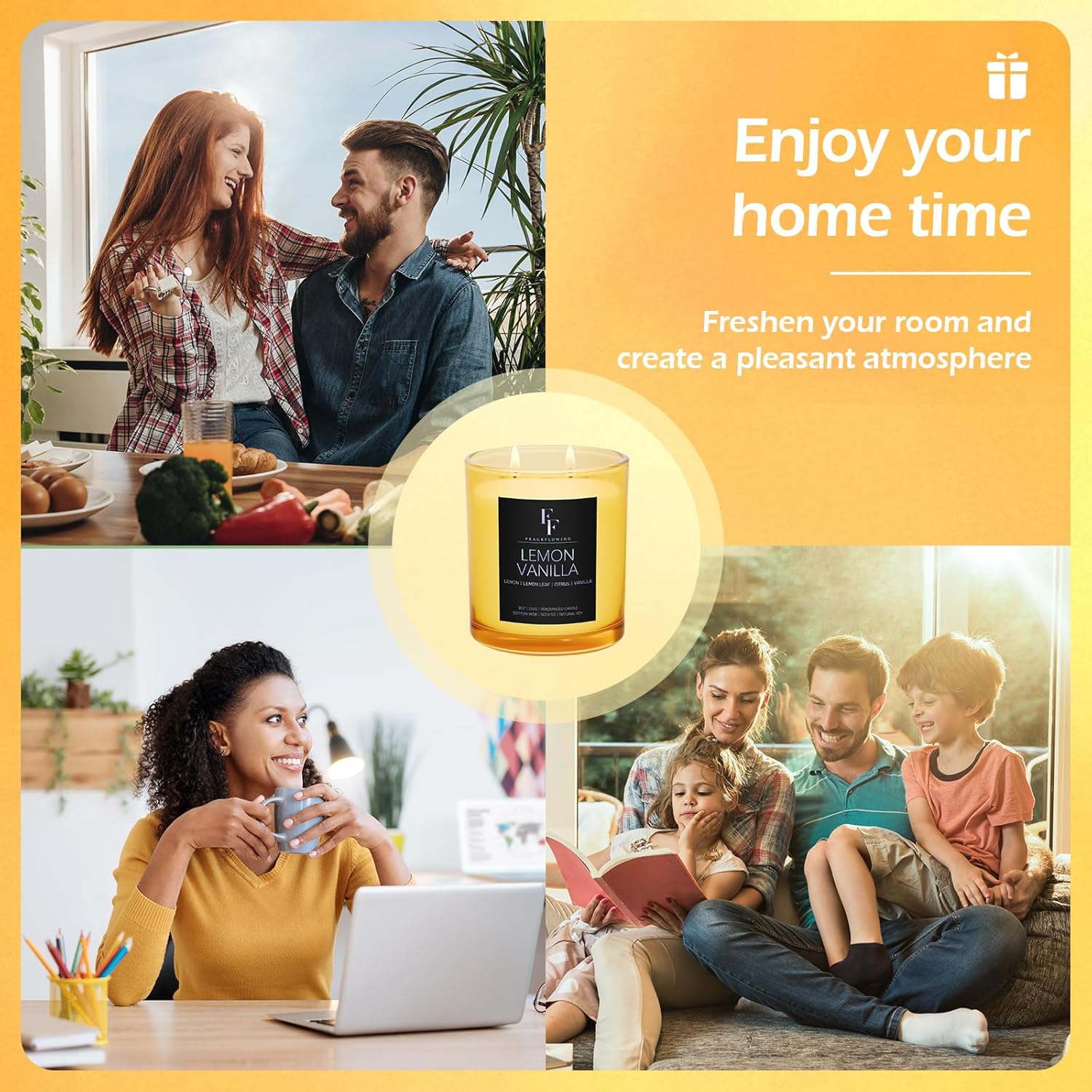 Lemon Vanilla Scented Candle, 2-Wick Luxury Soy Wax Candle, 9 oz Aromatherapy Candle Home Fragrance Candles Gift