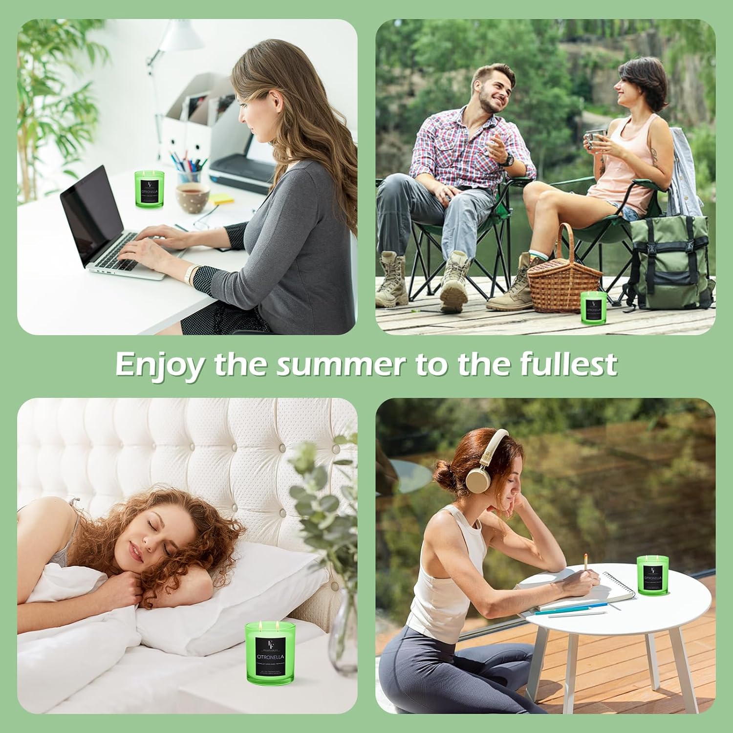 - Refreshing Summer Aroma: Citronella candle blends natural citronella oil, cool mint and lively lemongrass, bringing a refreshing fragrance like a garden after rain, instantly awakening summer vitality, perfect for creating a refreshing atmosphere during summer days and evenings