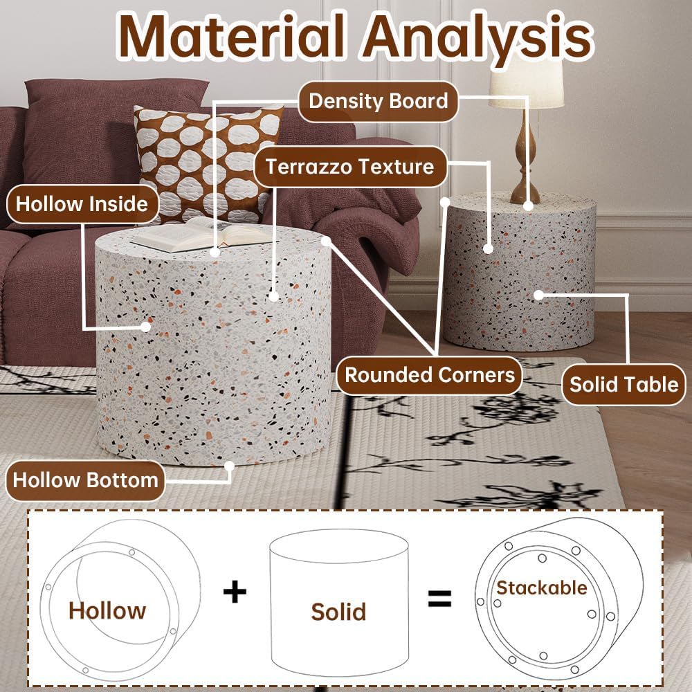 - Nesting Coffee Table Set of 2: This nesting coffee table includes two small coffee table. The round nesting coffee table is perfect for holding coffee, books, decorative items, drinks, remote controls, or other daily essentials. The nested coffee table can be used independently or combined to create a flexible and dynamic living space. Whether you're enjoying a cup of coffee on the coffee table nesting or using it for everyday items, this nesting tables meets your needs and enhances your quality of life.