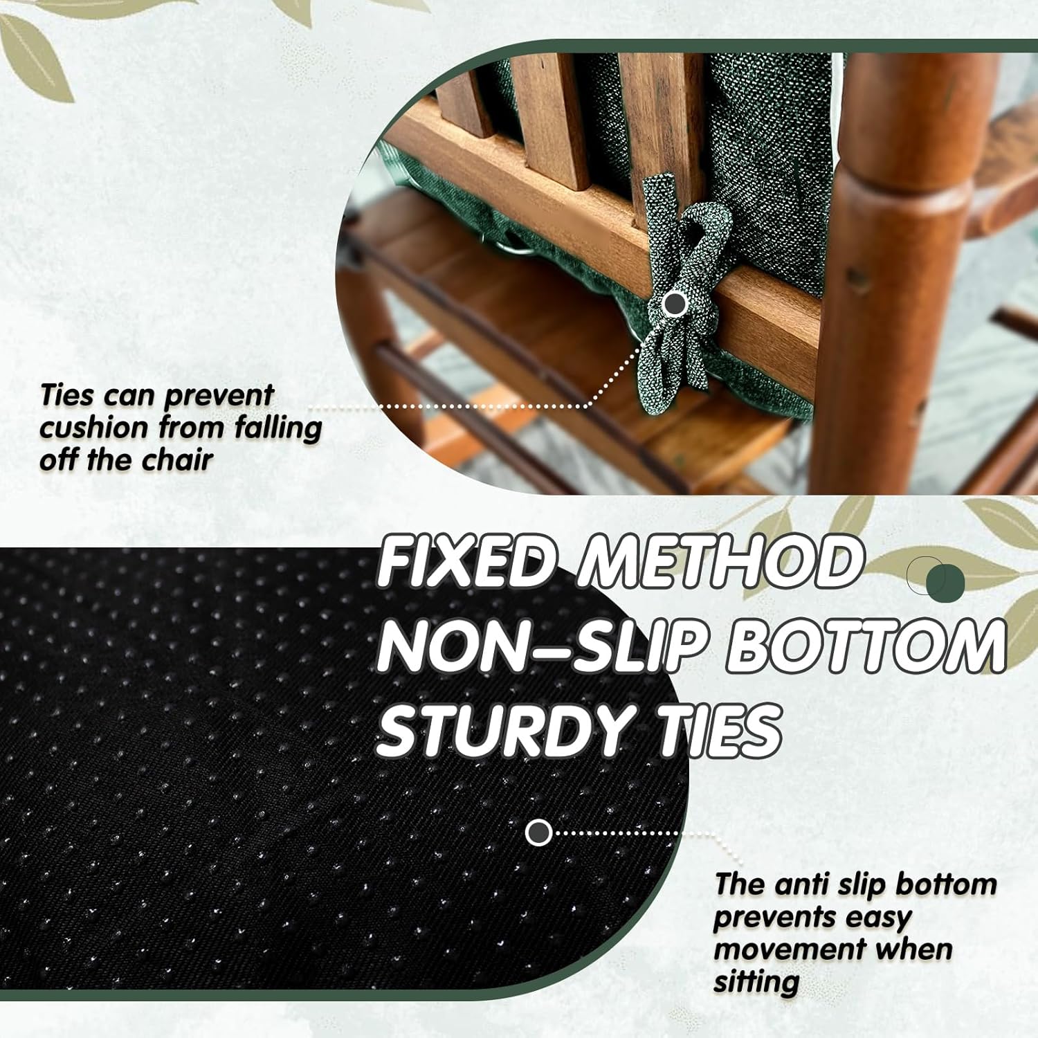 - Durable Ties for Stable Positioning: Equipped with robust ties that fasten firmly to your rocking chair, locking the cushions in place. This prevents the cushions from shifting or sliding during use, ensuring a consistently comfortable seating experience every time you relax in your rocking glider chair
