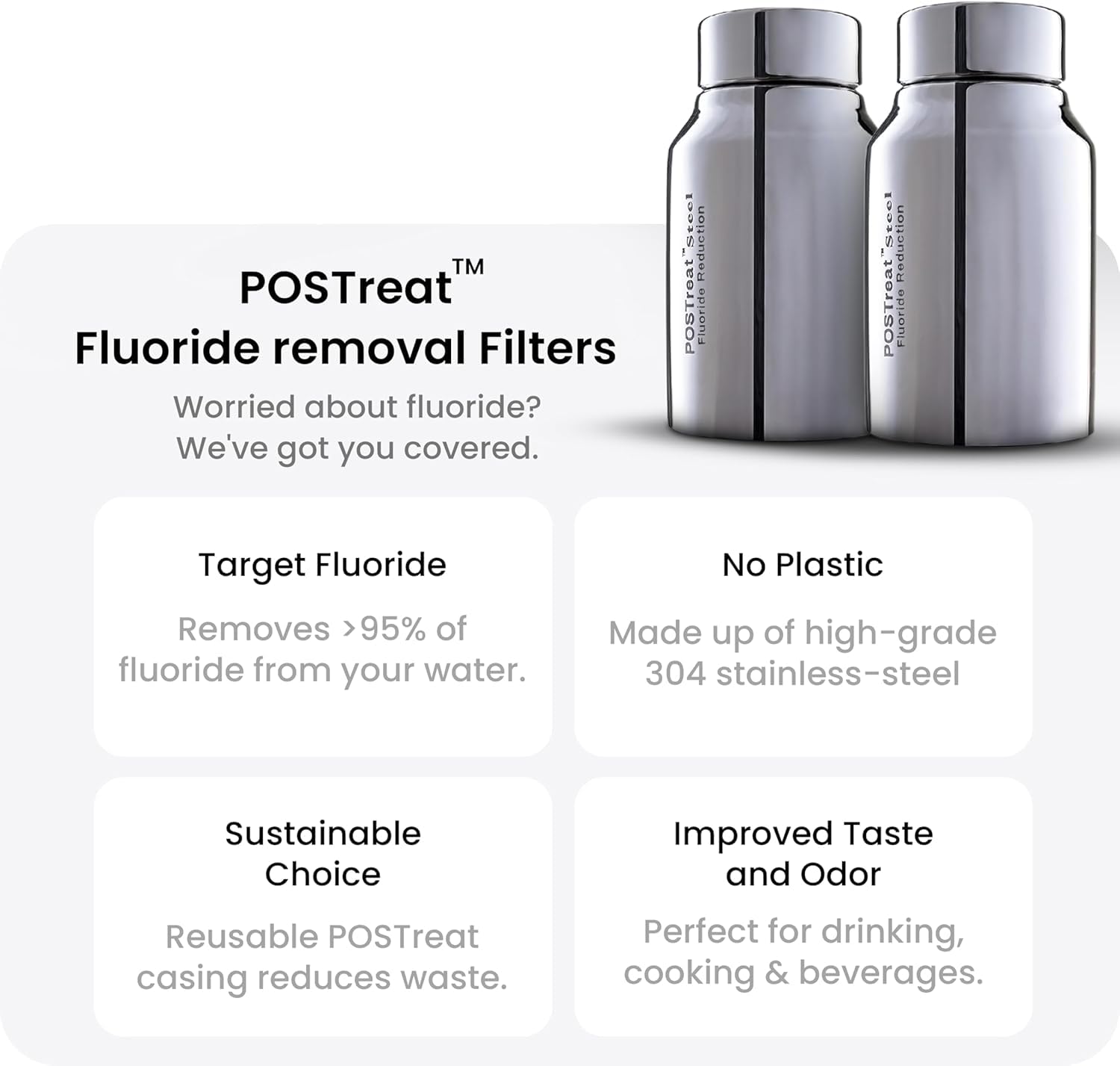 - ๐ ๐ฅ๐ฎ๐จ๐ซ๐ข๐๐-๐ ๐ซ๐๐ ๐๐๐ญ๐๐ซ - The postreat steel fluoride reduction filter elements made from AISI 304 stainless steel is built to last up to 10 years. The flourid media inside these filter elements removes over 95% of fluoride from your drinking water, delivering an added layer of protection for your familyโs health. Our postreat steel flourid refill media last up to 1060 gallons or lasts up to 4 months, the flourid media should be replaced every 4 months.