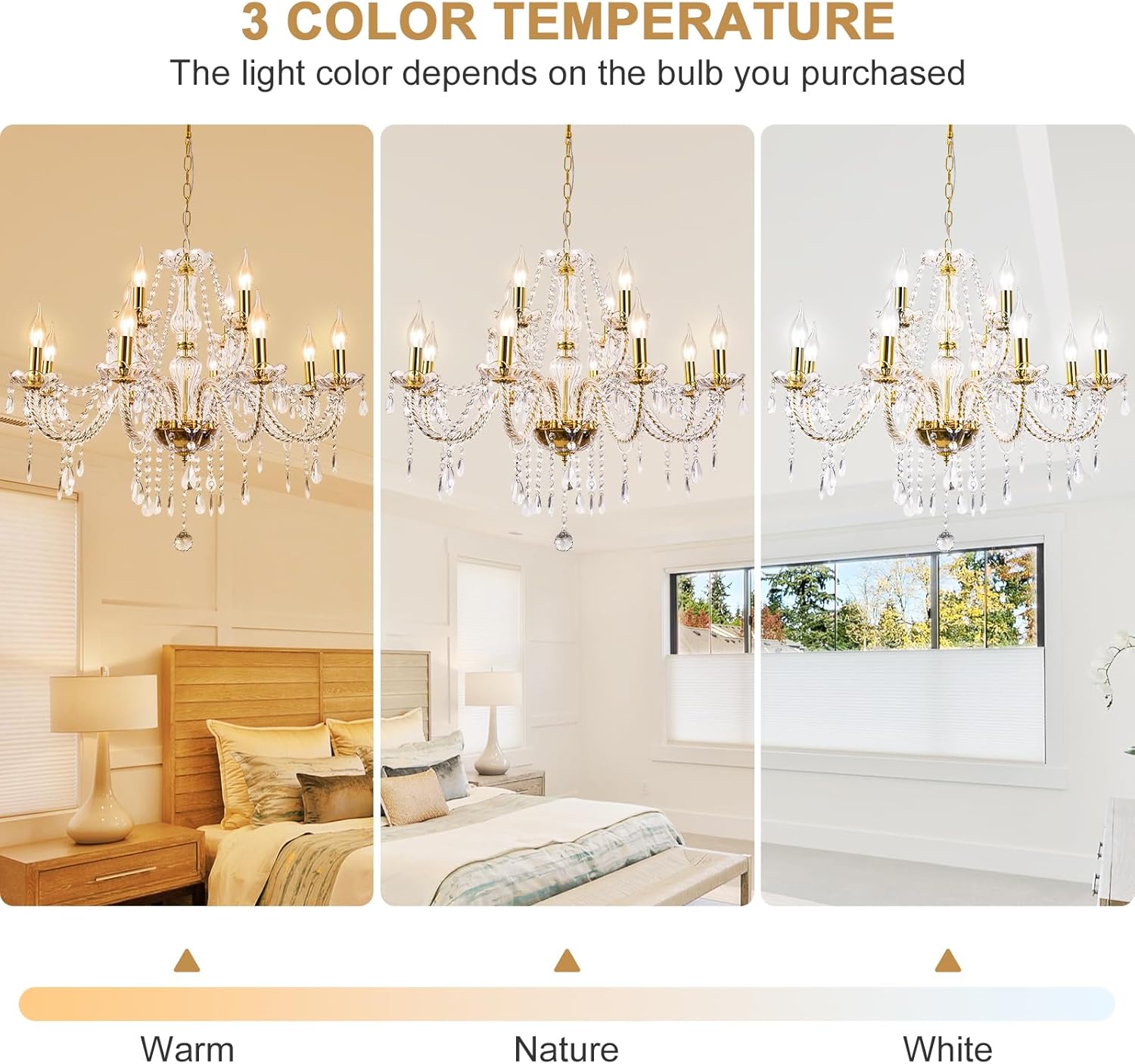 Modern Elegant 15 Lights K9 Crystal Glass Chandelier Golden Pendant Ceiling Lighting European Style for Dining Living Room Bedroom Transparent,15 E12 Bulbs Required
