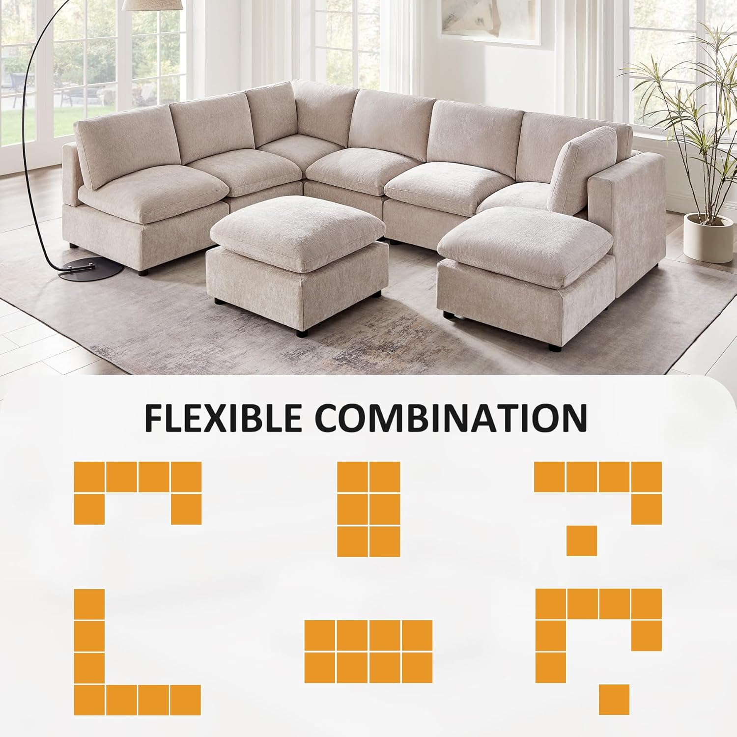 - Customizable Seating - Add or remove middle modules or ottoman modules to adjust seating capacity. Perfect for both spacious living rooms and compact spaces