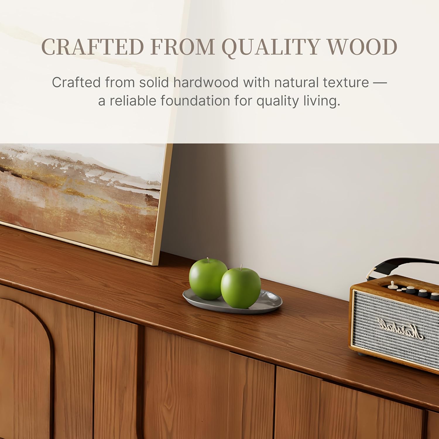 - MEDIEVAL RETRO STYLE: The medieval retro style of our TV cabinet is truly captivating. The walnut hue not only reflects the retro aesthetic but also adds a touch of warmth and sophistication, making it a perfect focal point that can enhance the overall ambiance of your entertainment area. The delicate curved three-dimensional carvings are intricately detailed and uniquely charming