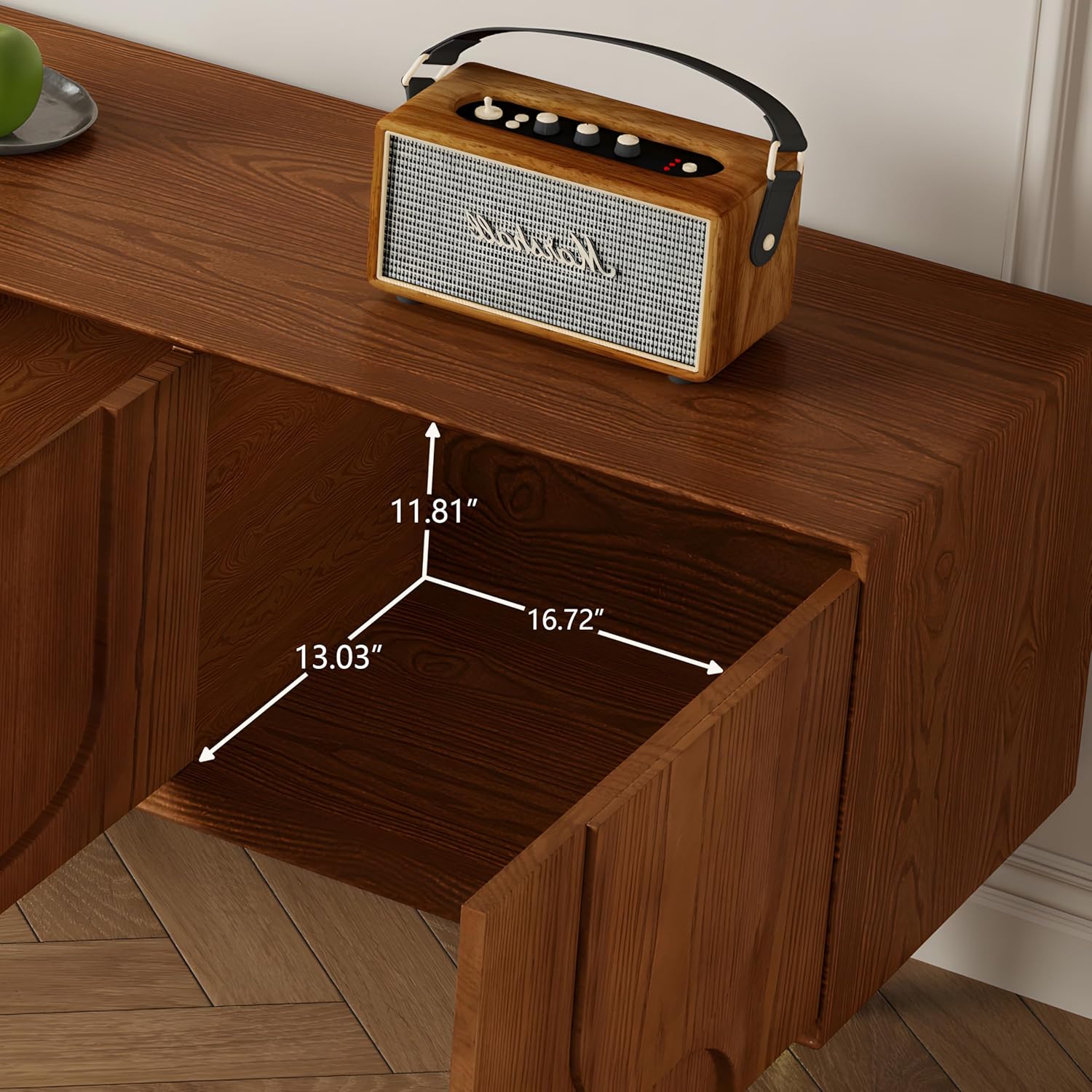 Mid-Century Modern TV Stand, 71'' Walnut TV Stand with Storage, Wooden TV Consoles Entertainment Center TV Table for Living Room, Bedroom