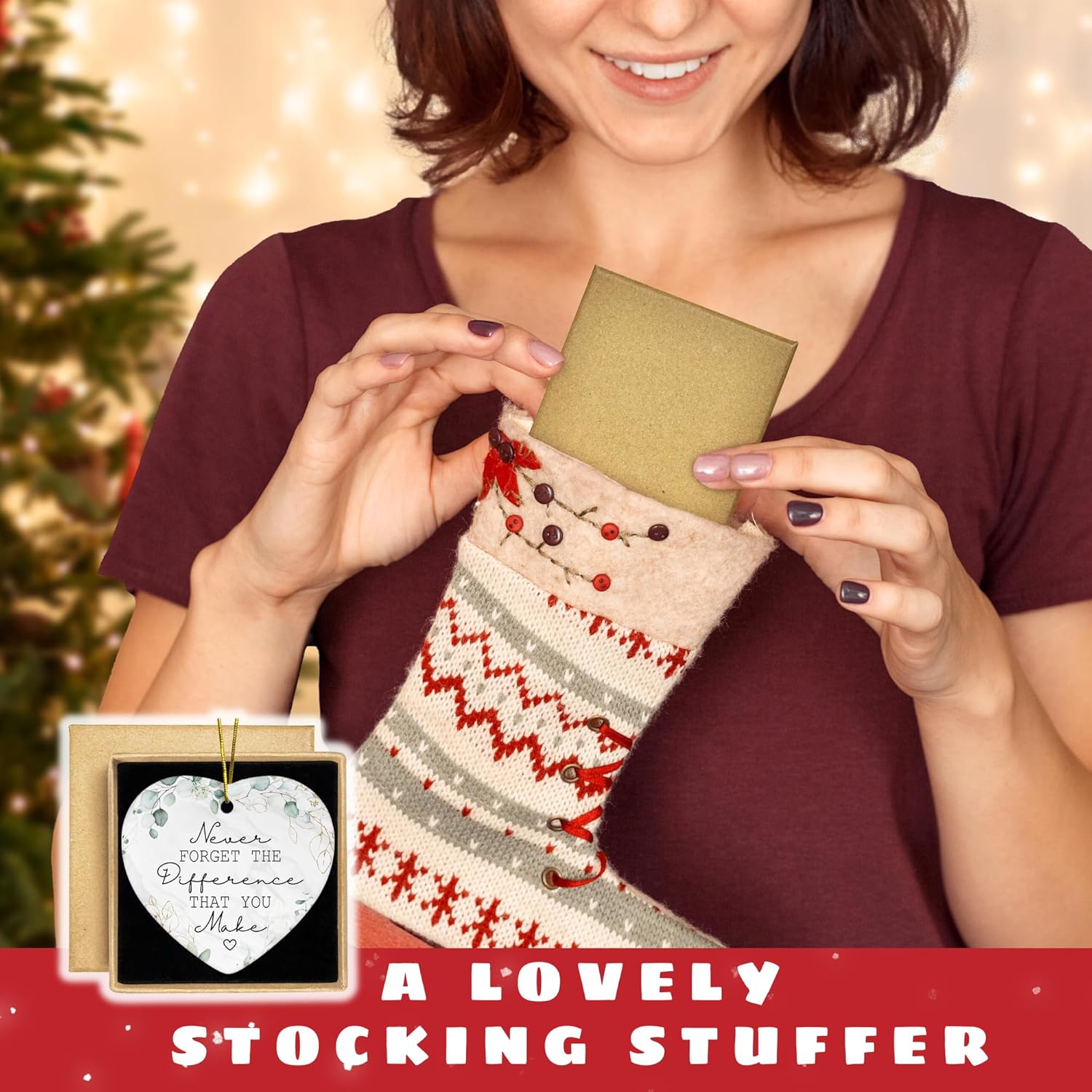 Thank You Gifts - Never Forget The Difference That You Make Ornament - Appreciation Gifts for Women, Boss, Coworker, Teacher, Nurse - Inspirational Farewell Going Away Gift - Ceramic Ornament