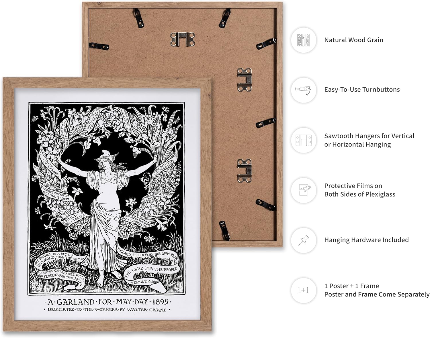 Poster Master Vintage Walter Crane Poster - Retro A Garland for May Day Print - Socialist Art - Gift for Him, Her, Men, Women - Wall Decor for Home, Office, Living Room, 11x14 Beige Framed