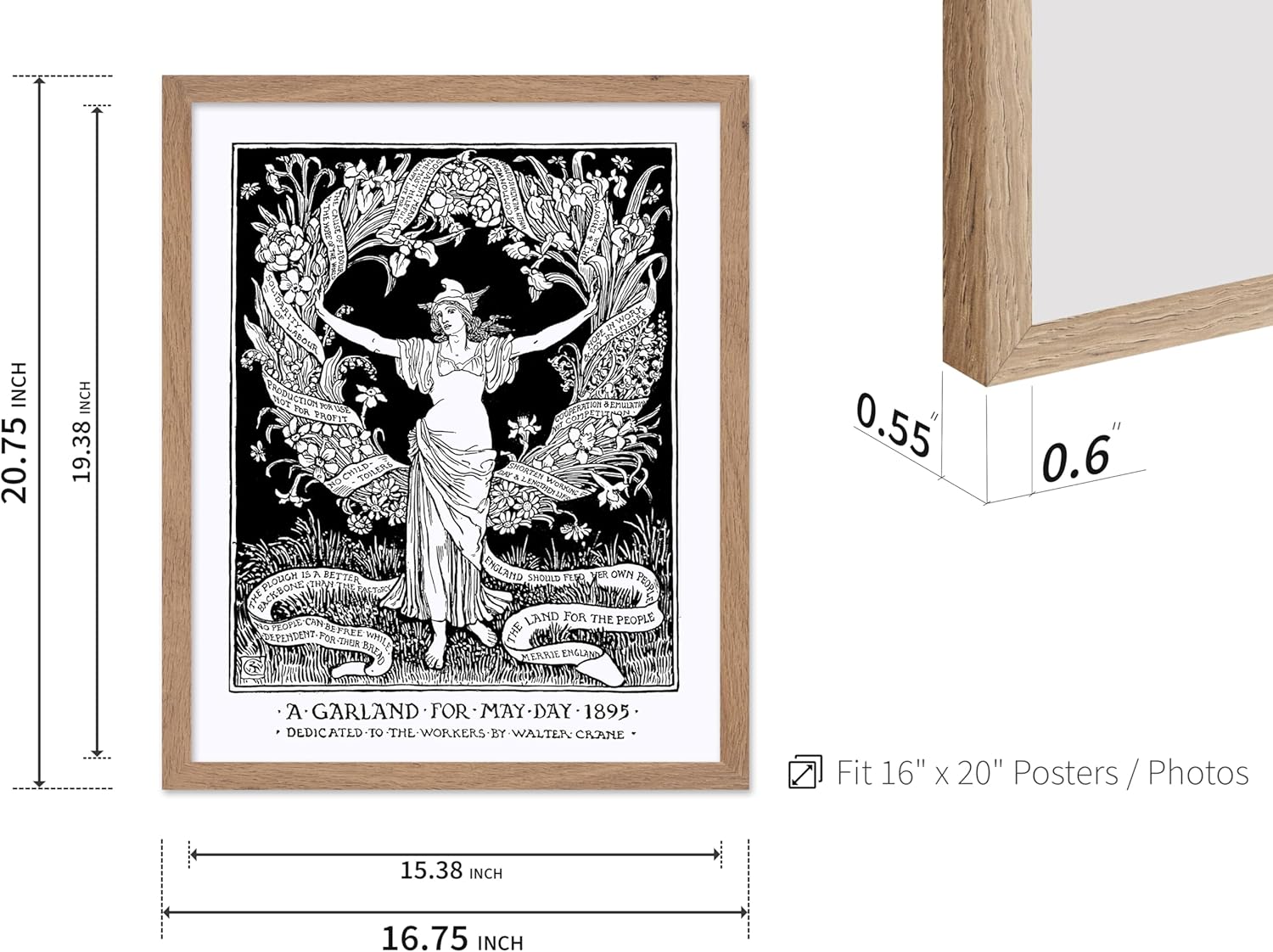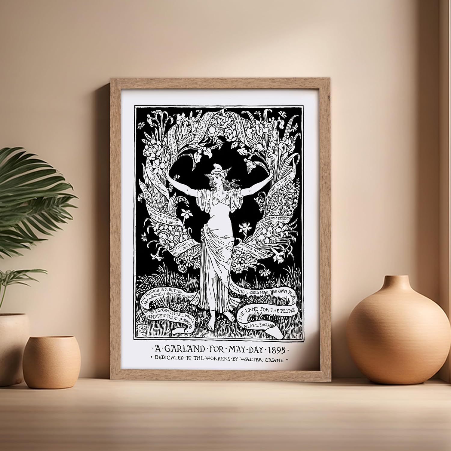 Poster Master Vintage Walter Crane Poster - Retro A Garland for May Day Print - Socialist Art - Gift for Him, Her, Men, Women - Wall Decor for Home, Office, Living Room, 16x20 Beige Framed