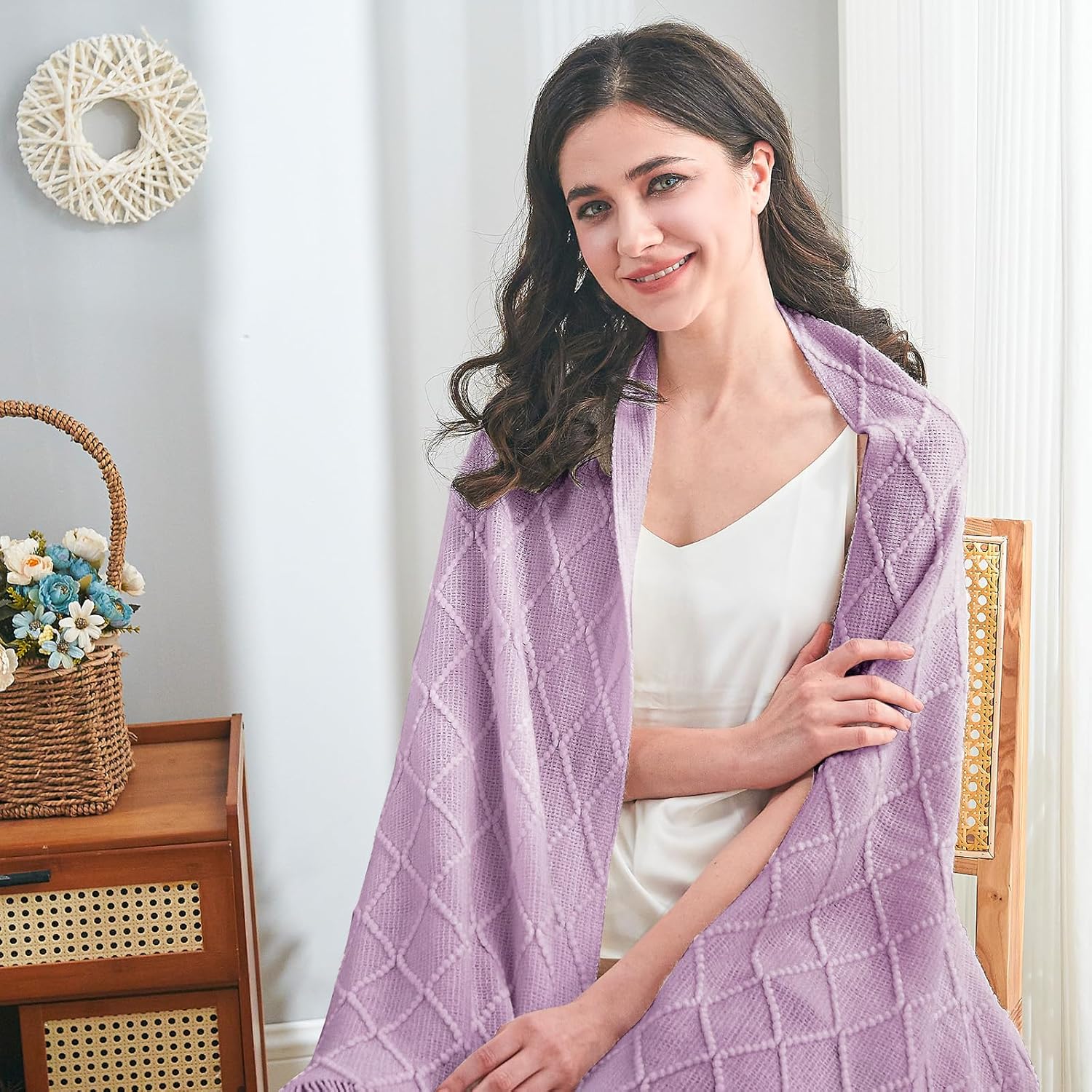 - 【GIFT IDEAS】: Special knitted diamond patterns add a unique accent to your room and people draping it as a shawl. Very suitable for tasteful homeowners. Throw blanket for women, classic but not too tacky as a housewarming gift. Tips: Due to different lighting, display settings, or resolutions, the difference in color happens. We are dying to show the color. To do so, one of the images shows the color difference in different lighting. Hope these instructions would help you to buy a throw.
