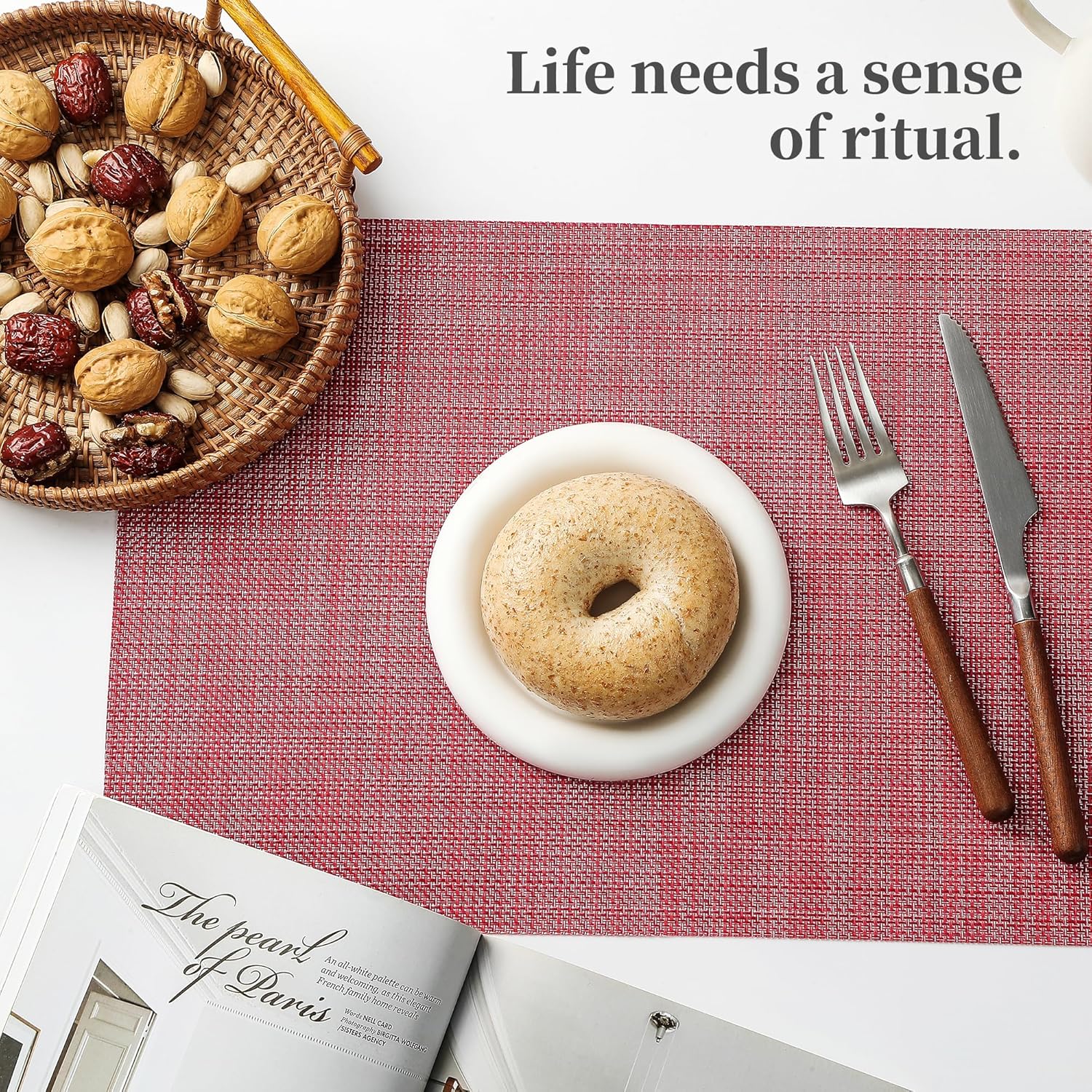 Leetaltree Red Placemats Set of 6 - Heat Resistant Non-Slip Place mats for Dining Table, Washable Durable PVC Vinyl Woven Table Mats(Red, 6)