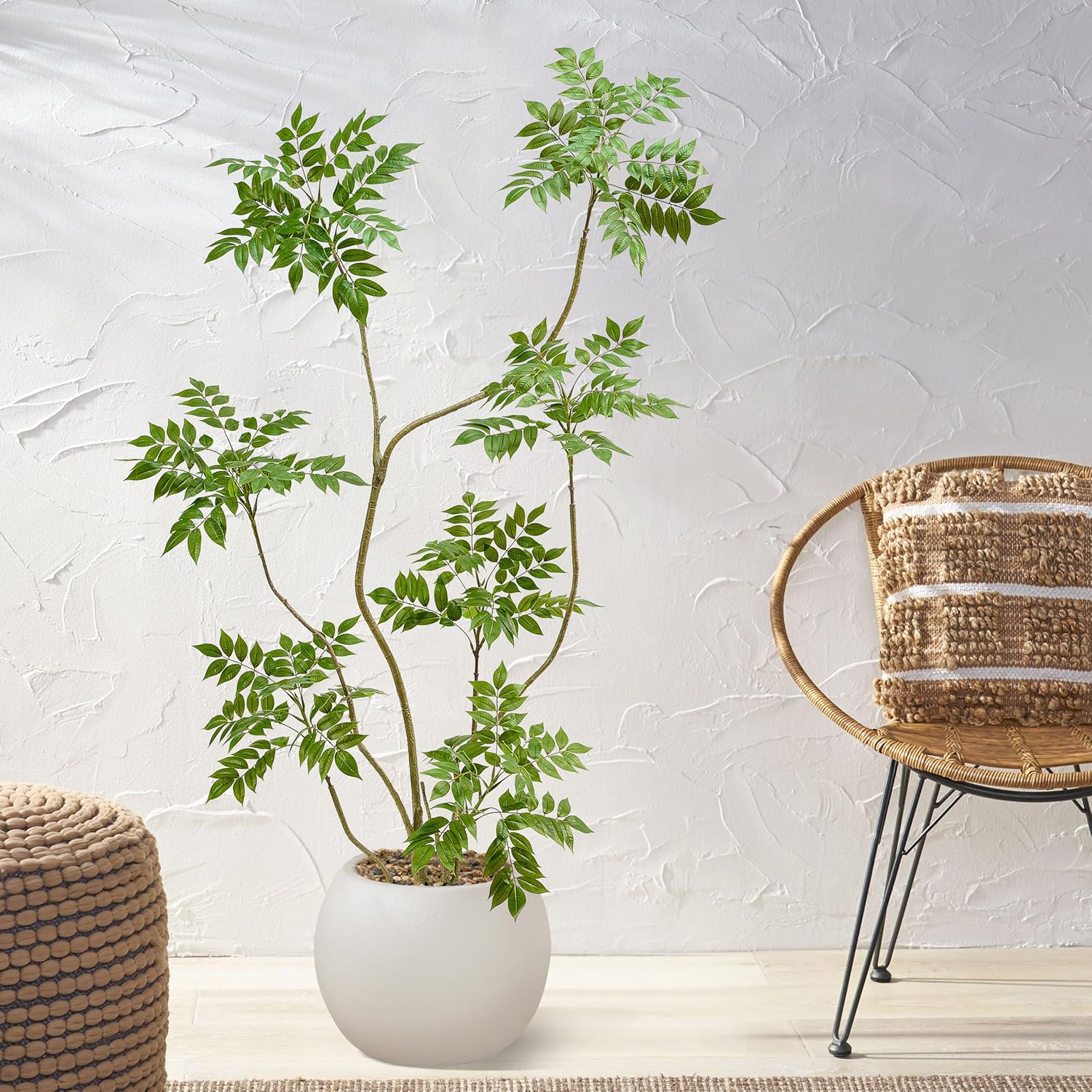 Artificial Mahonia Fortunei Tree 6ft,Tall Fake Plant Artificial Sumac Tree, Faux Plants Indoor Fake Plants Decor with Pots for Home Office Bathroom Bedroom Living Room Decorations Housewarming