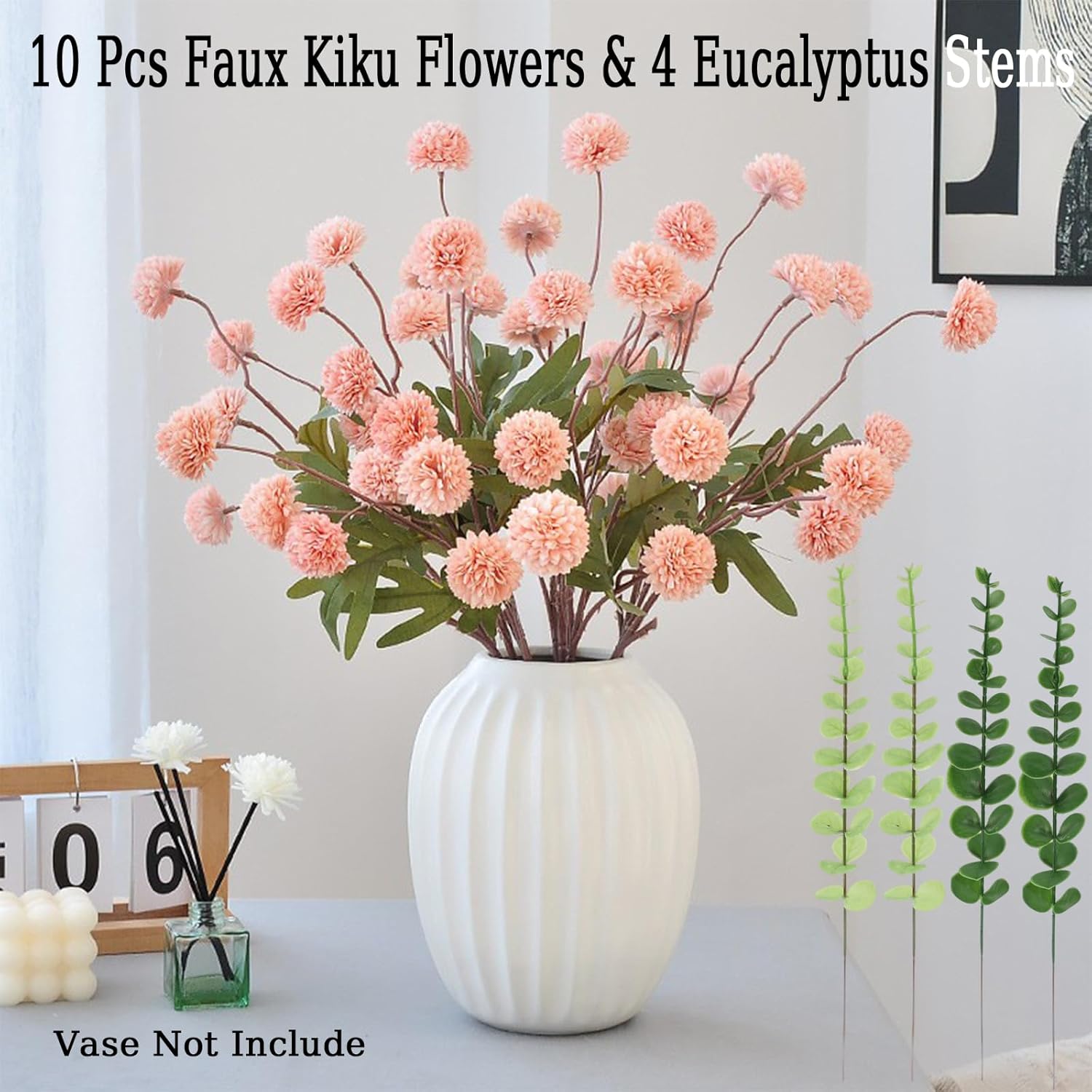- Customizable Faux Flower Arrangements: With artificial stems and greenery, including bulk eucalyptus stems, you can create stunning floral arrangements tailored to any season or theme. Combine faux fern and other stems for a boho vibe or craft a floral centerpiece with artificial chrysanthemums and kiku flowers for added elegance. Ideal for fall, winter, or everyday home decor, these versatile faux flowers bring diversity and charm to any setting