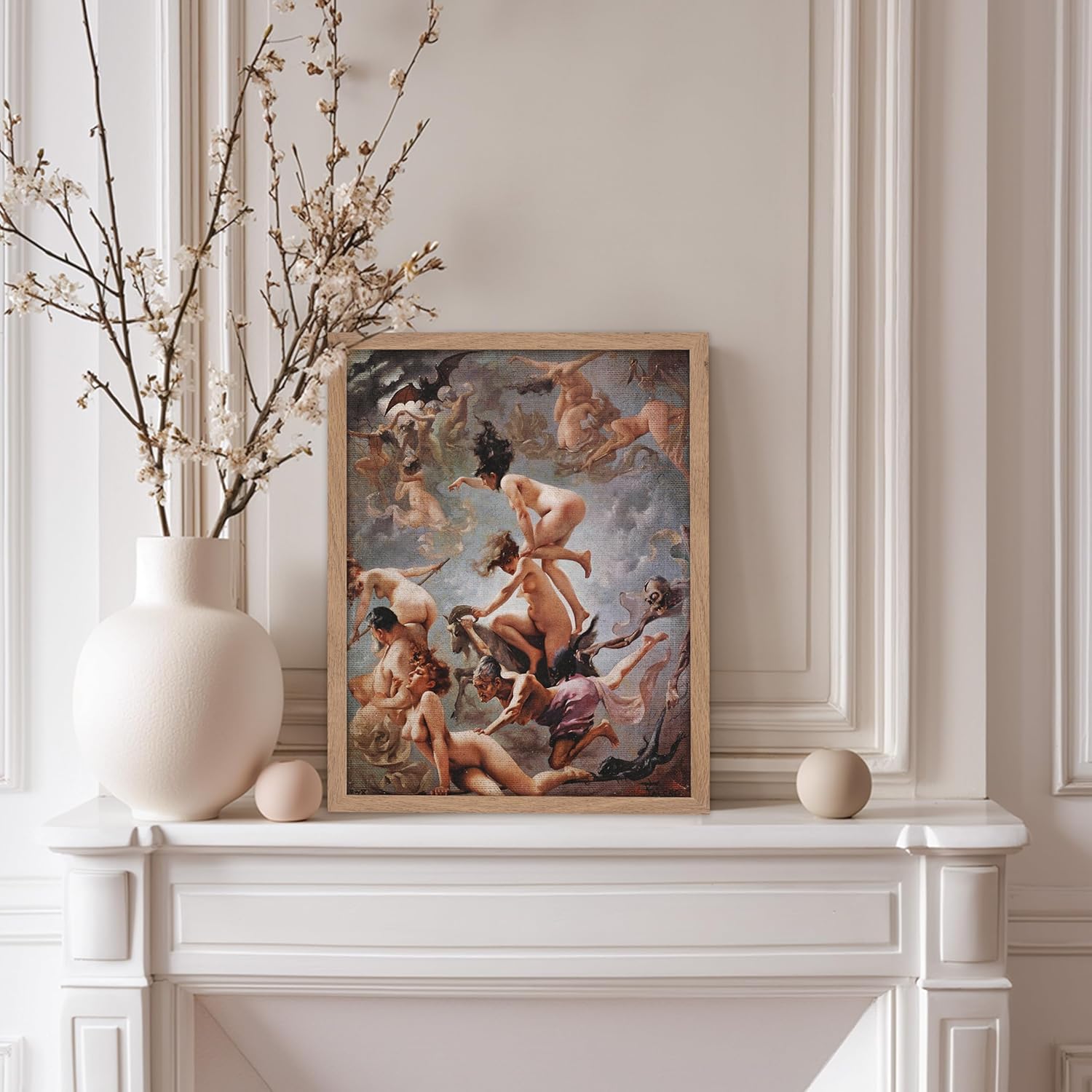 Poster Master Vintage Luis Ricardo Falero Poster - Retro Occult Print - Gift for Gothic, Horror Fan - Witches Going to their Sabbath, Pagan - Wall Decor for Bedroom, Dorm, 8x10 Beige Framed