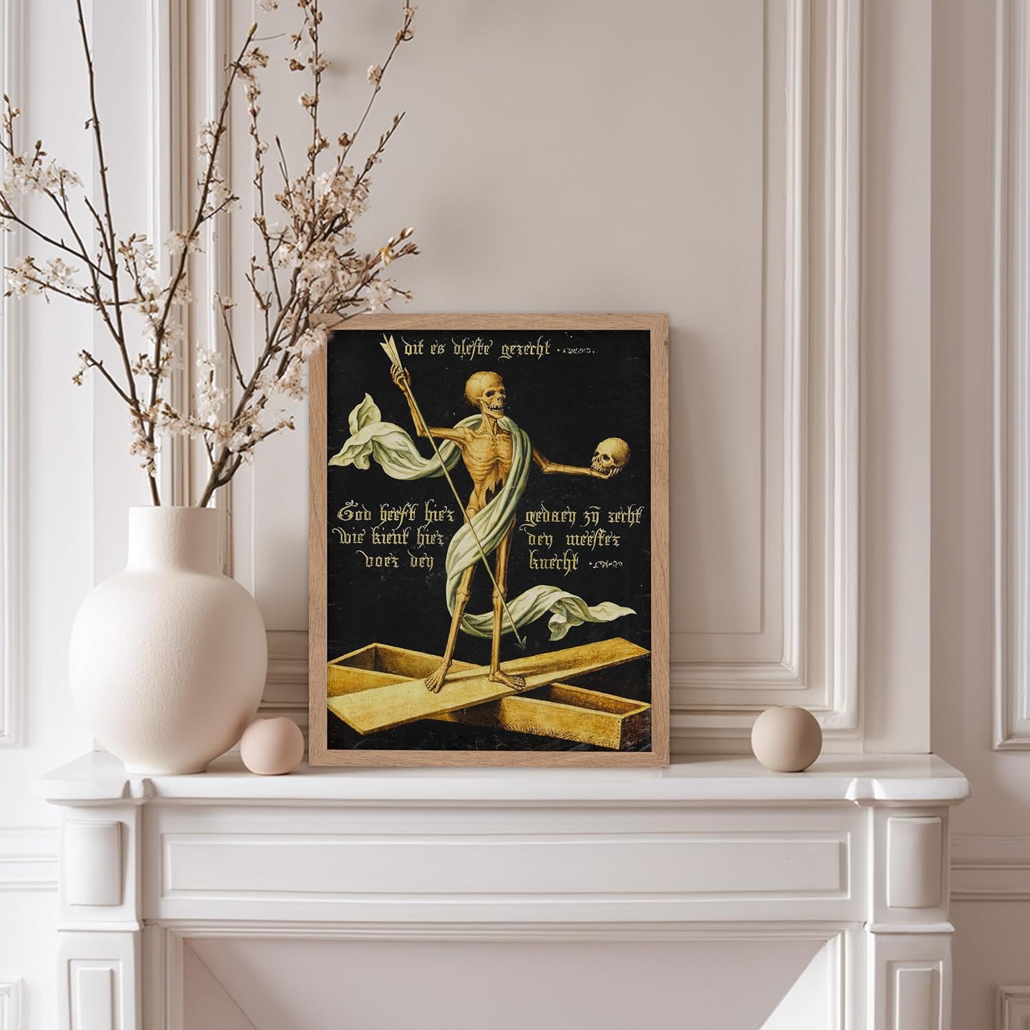 Poster Master Vintage Medieval Poster - Retro Gothic Print - Gift for Artist, Friend - Allegory of Life and Death, Skeleton, Dark, Skull - Wall Decor for Home, Living Room, 8x10 Beige Framed