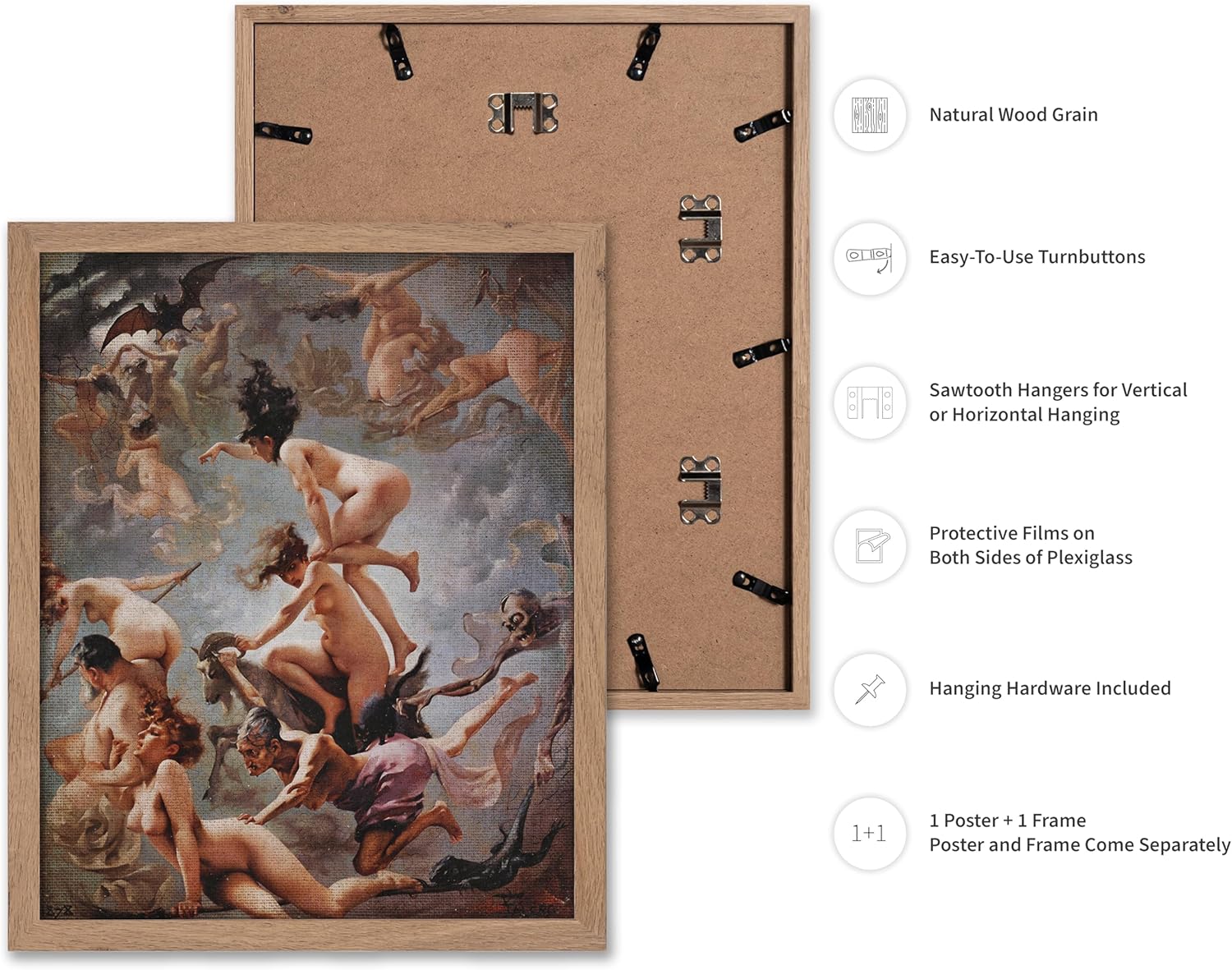 Poster Master Vintage Luis Ricardo Falero Poster - Retro Occult Print - Gift for Gothic, Horror Fan - Witches Going to their Sabbath, Pagan - Wall Decor for Bedroom, Dorm, 16x20 Beige Framed