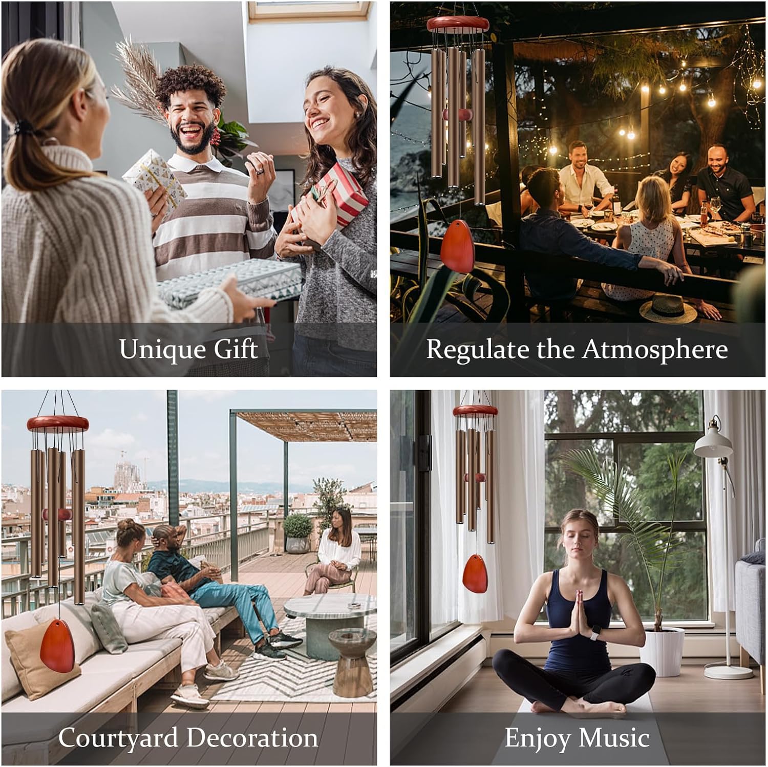 - ♬【Premium Material】Through repeated tests and experiments on a large number of materials, due to the characteristics of pine wood is not easy to crack and decay, we chose pine wood as our wood material. The main body of the wind chime is made of aluminum tubes and chamfered with spray paint, which is rust-proof and sturdy, making the life of the wind chime much longer and more beautiful and durable at the same time.