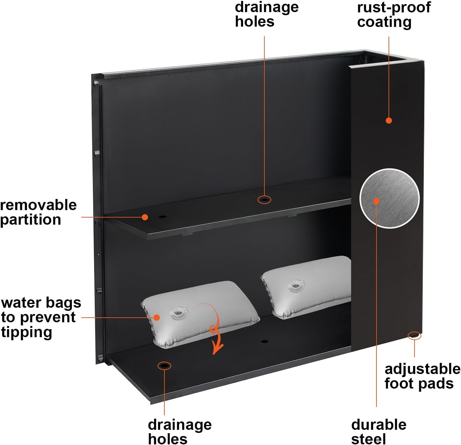 - Anti-Tipping Stability: Our flower box comes with two included water bags to enhance stability by adding weight to the base and can withstand a maximum tilting force of 30bf. Perfect for when using lightweight decorations