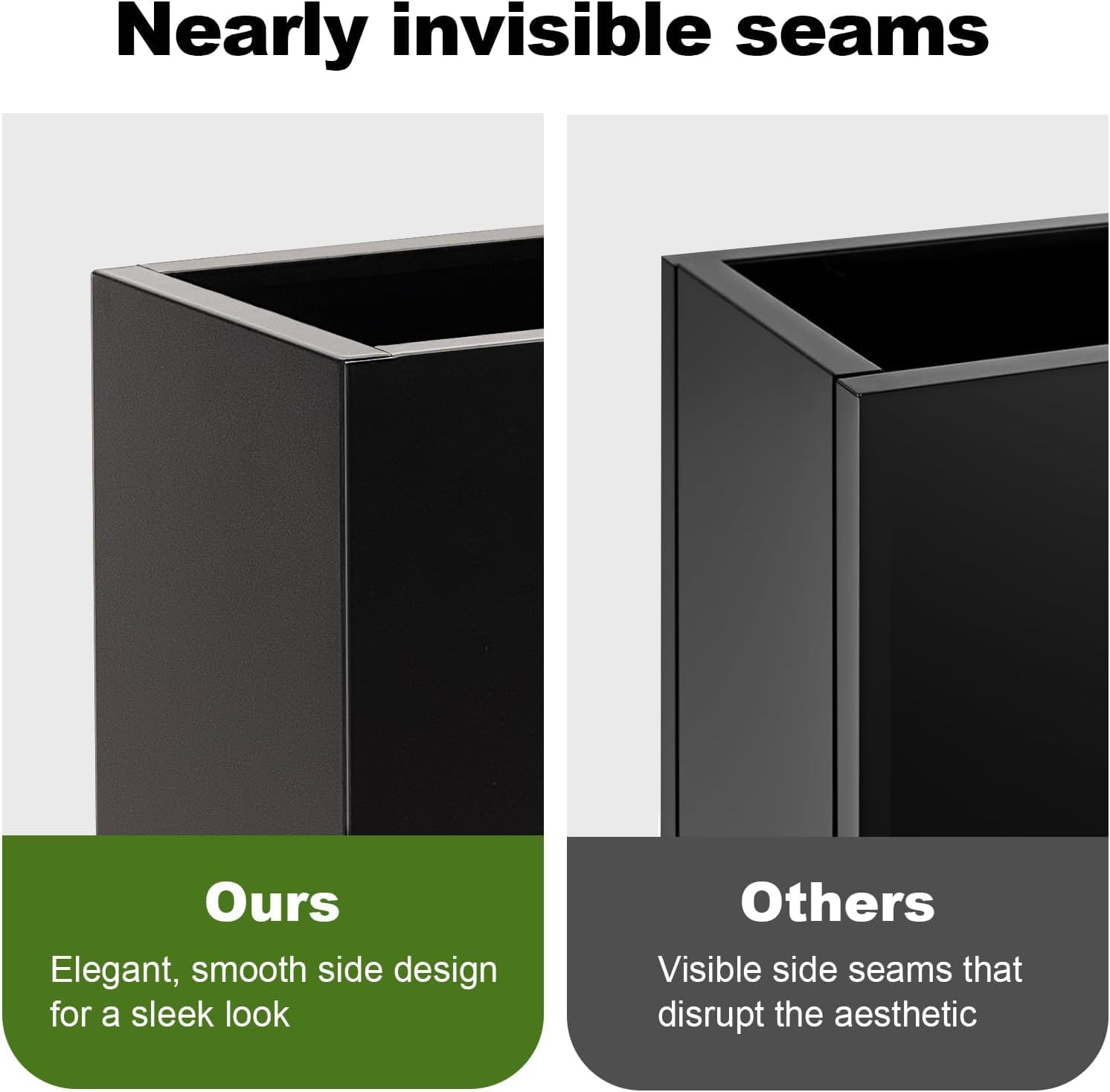- Nearly invisible seams: Our large planter box has smooth sides, offering a sleek, modern look for your garden, patio, or balcony. No unsightly seams to disrupt its elegant appearance. Perfect for any indoor or outdoor decor