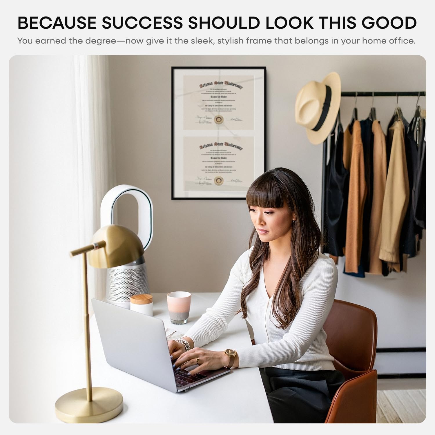 Homeforia 14x20 Double Diploma Frame Black, High End Metal 14 x 20 Certificate Frames with Mat for Two 8.5 by 11 Diplomas, 20x14 Dual Award Graduation Matted Frames, Tempered Glass, Wall Kit, Set of 1