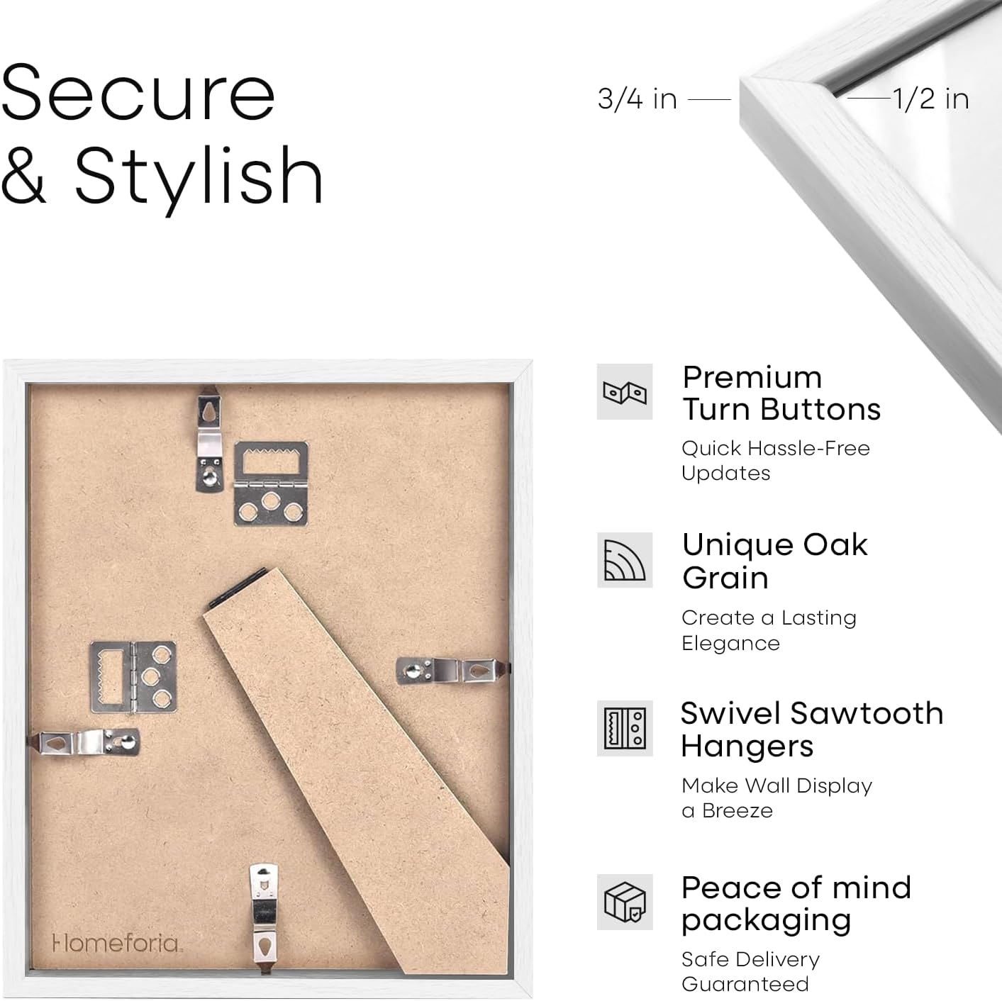 Homeforia 5x10 Business License Frame White, High End Oak 5 x 10 White Wood Document Certificate Frame with Mat 4x9, 10x5 Wooden Picture Frames for Wall or Tabletop, Tempered Glass, Wall Kit, Set of 1