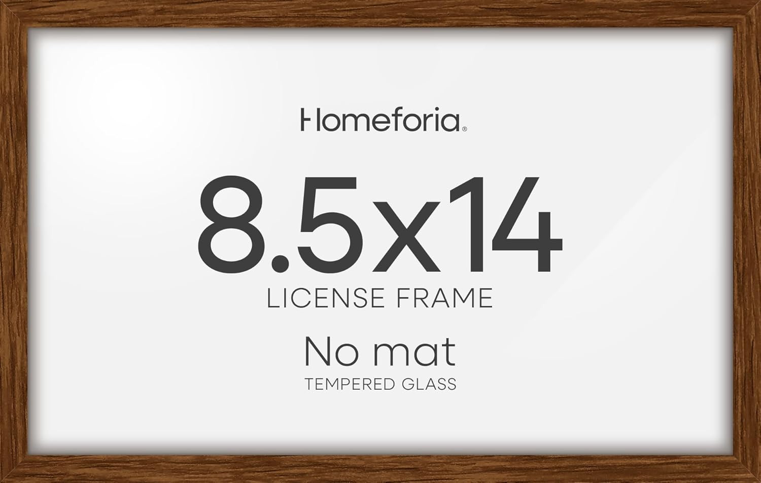 Homeforia 8.5x14 Marriage License Frame Brown, High End Dark Oak 8.5 x 14 Certificate Frames, 8.5by14 Walnut Wood Frame for Wall & Tabletop, 8.5 by 14 Wooden Frames, Tempered Glass, Wall Kit, Set of 1