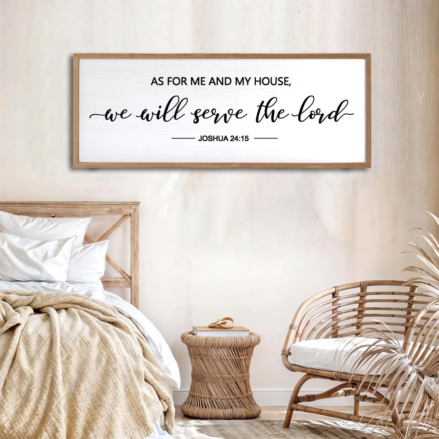 - 【Encouraging Words】JOSHUA 24:15 As For Me And My House large hanging wood sign adopt minimalist letters on the white background, showing constant reminder of faith and devotion in any setting and you passion for god, adding a touch of elegant, and classic beauty to your space and giving people a calming feeling.