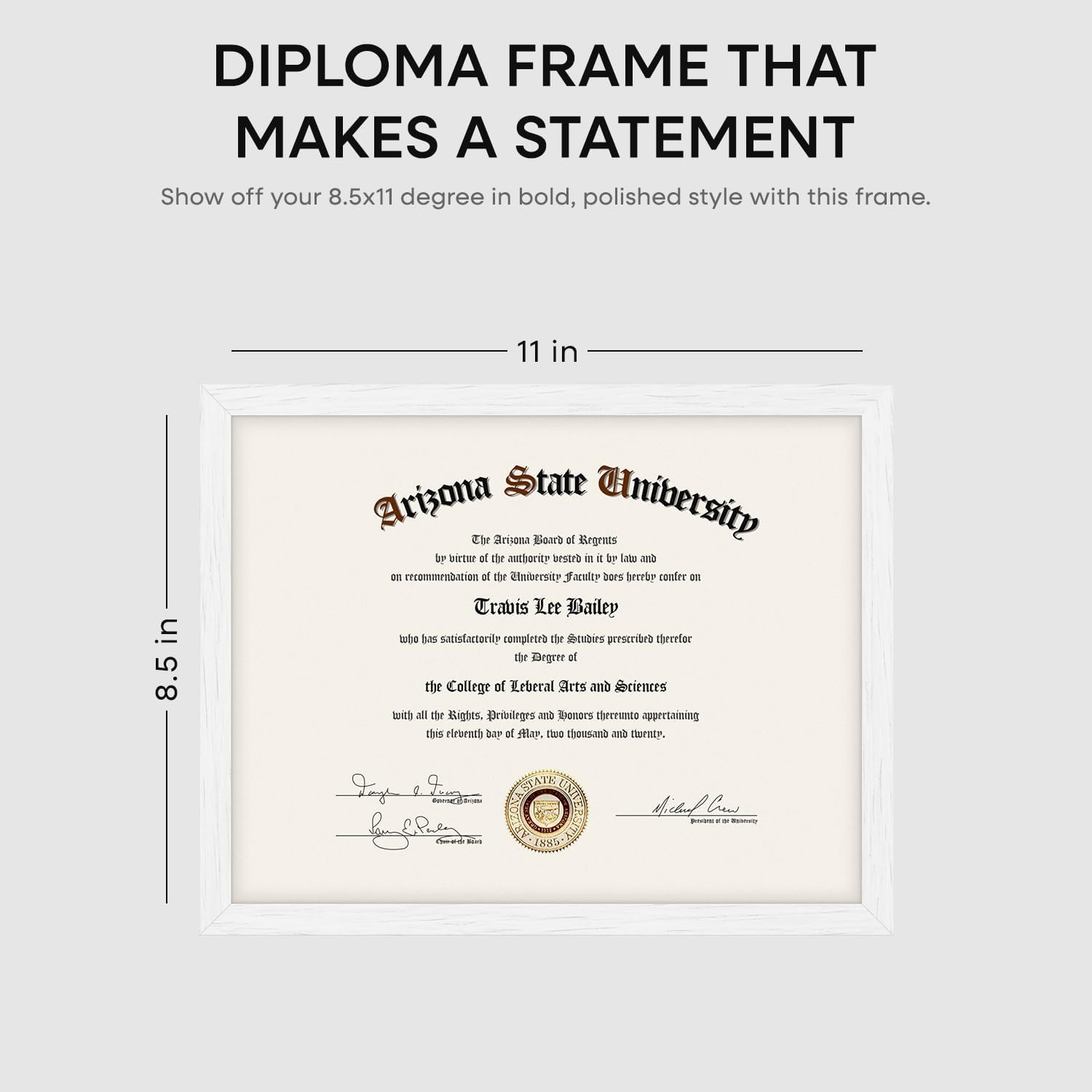 Homeforia 8.5 x 11 Diploma Frame White Wood, High End Oak 8.5x11 Certificate Frames, 11x8.5 Document Frames for Wall or Tabletop, 8.5 by 11 Award White Wooden Frame, Tempered Glass, Wall Kit, Set of 1