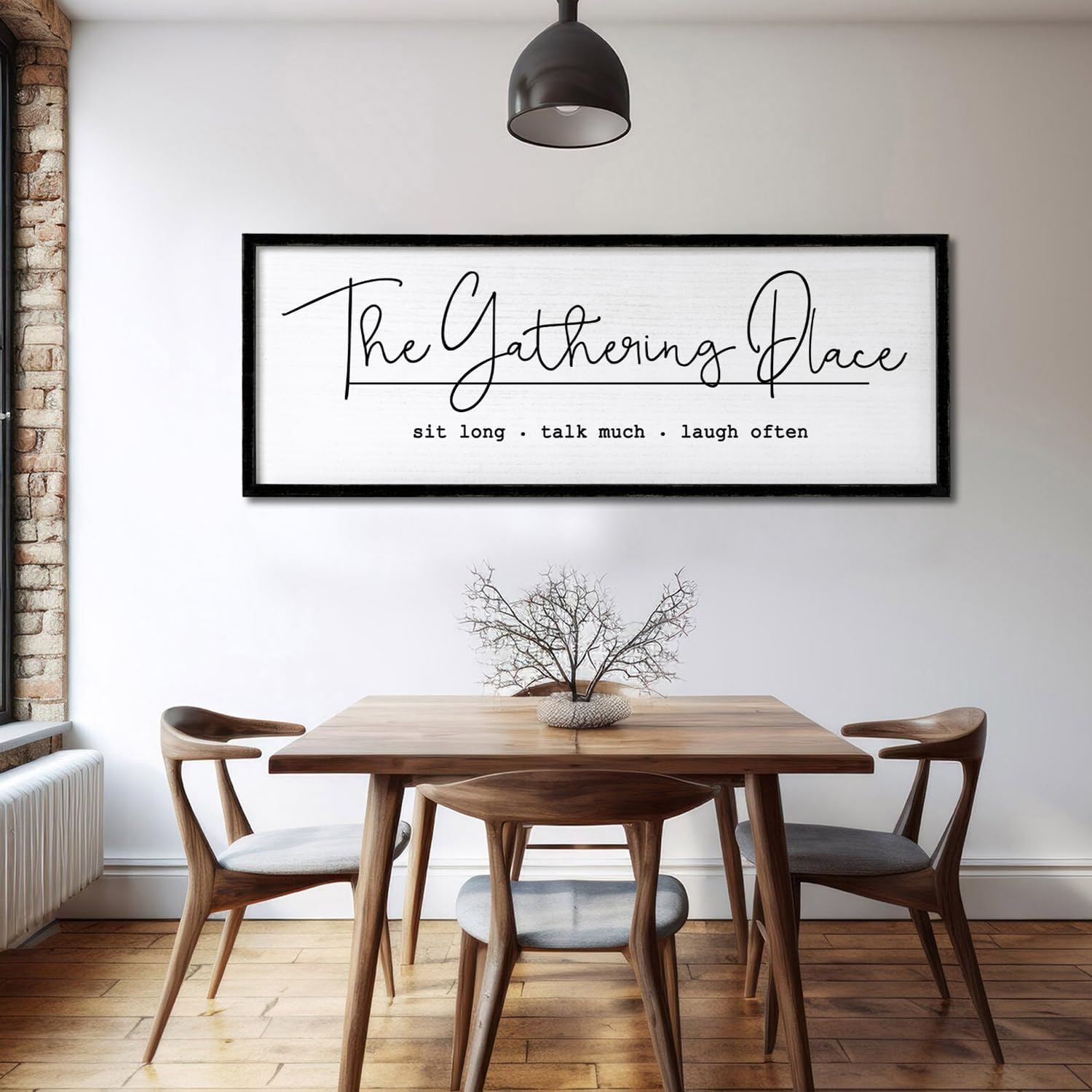 The Gathering Place Wall Decor Art 24"X10" for Dining Room gather Kitchen Wall Wooden Framed Sign (Black)